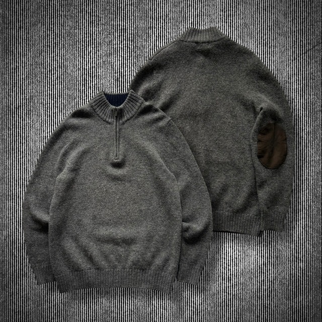 00s L.L.Bean Elbow Patch Half Zip Wool Knit Sweater