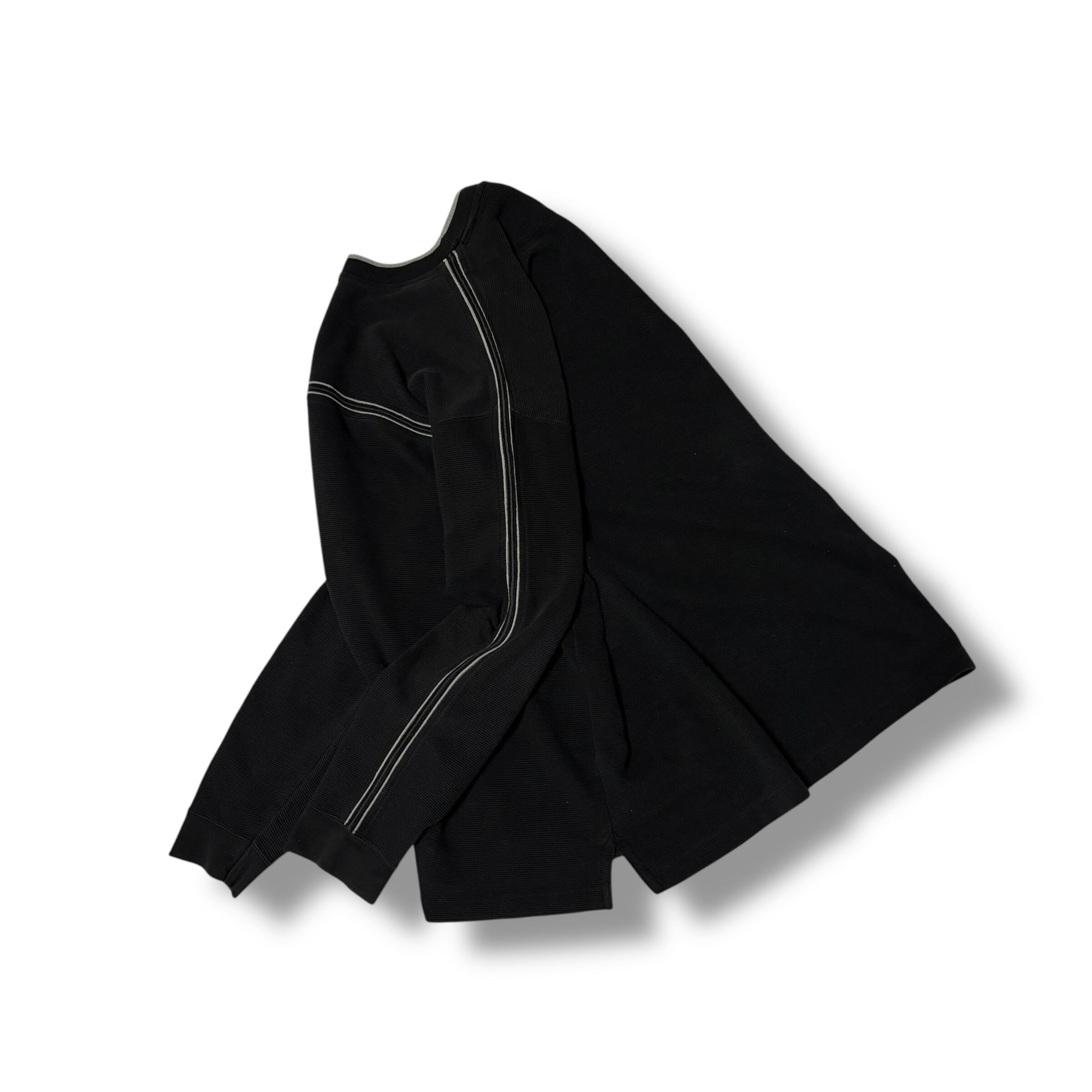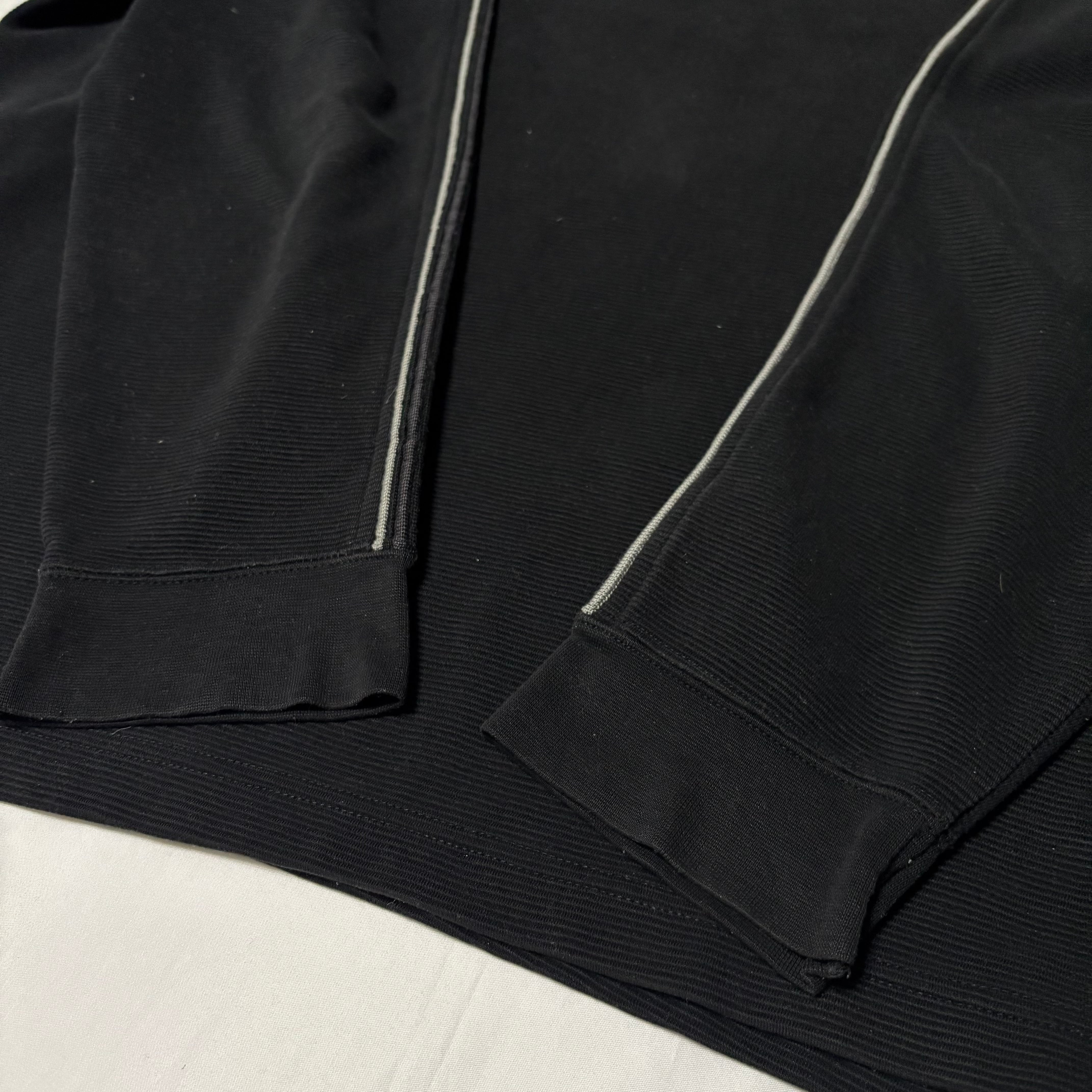 細いピッチの横畝が全面に入ったブラックのボディはロンTとスウェットのちょうど中間のような厚みの生地感となっており、春先には大いに活躍してくれそうです。
