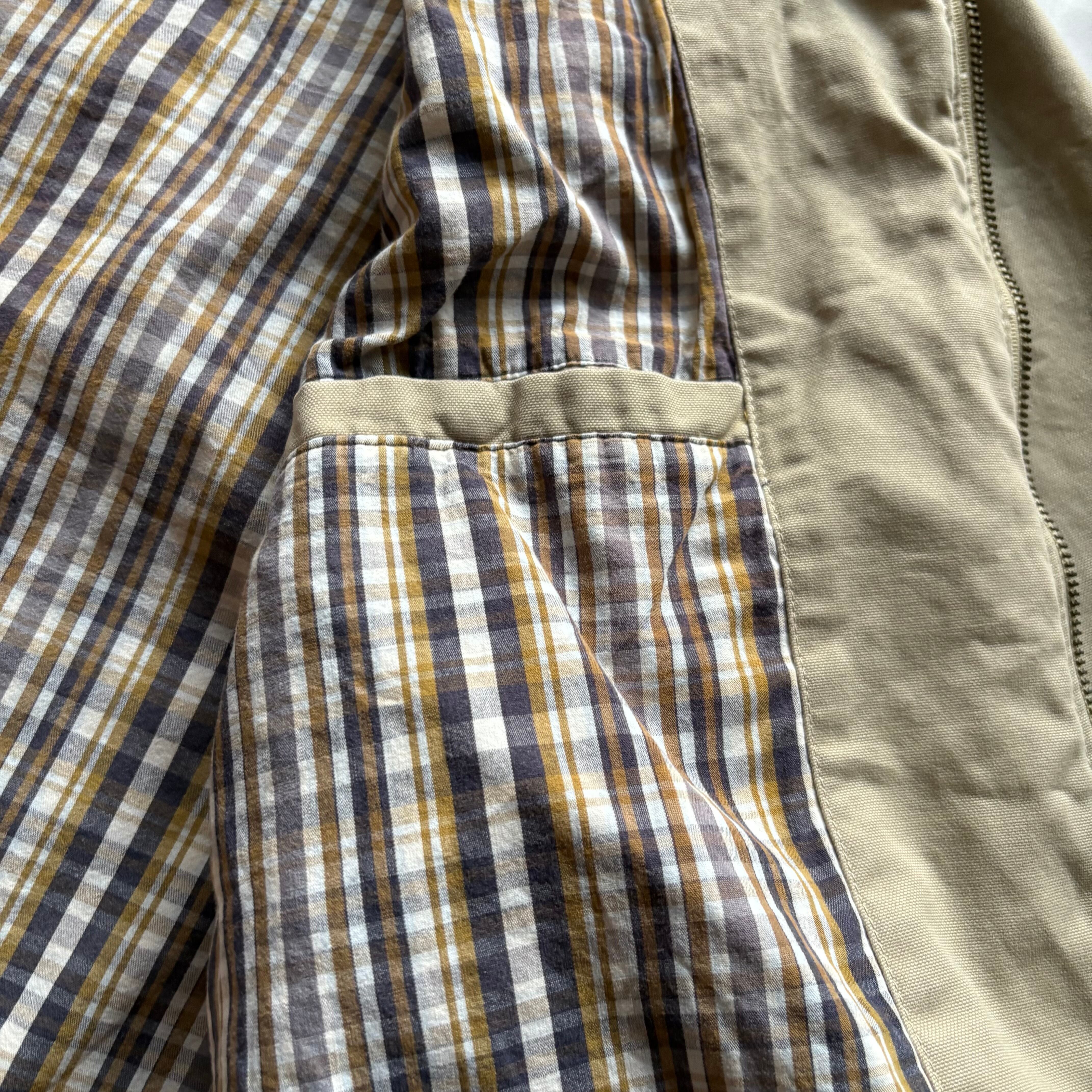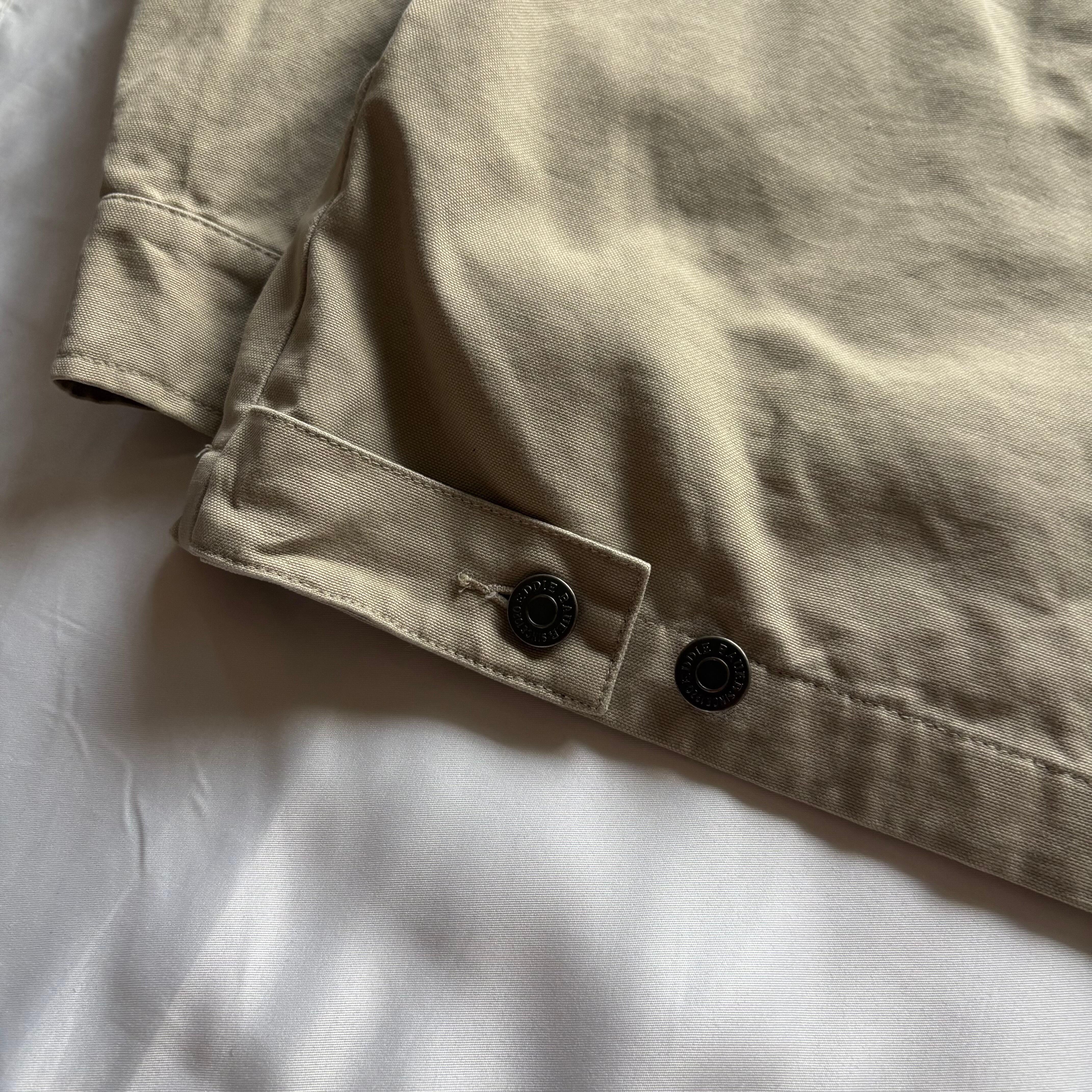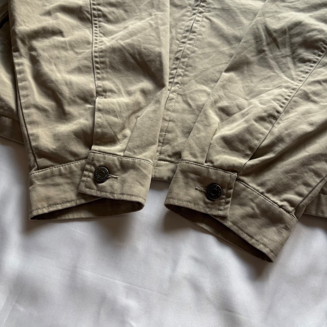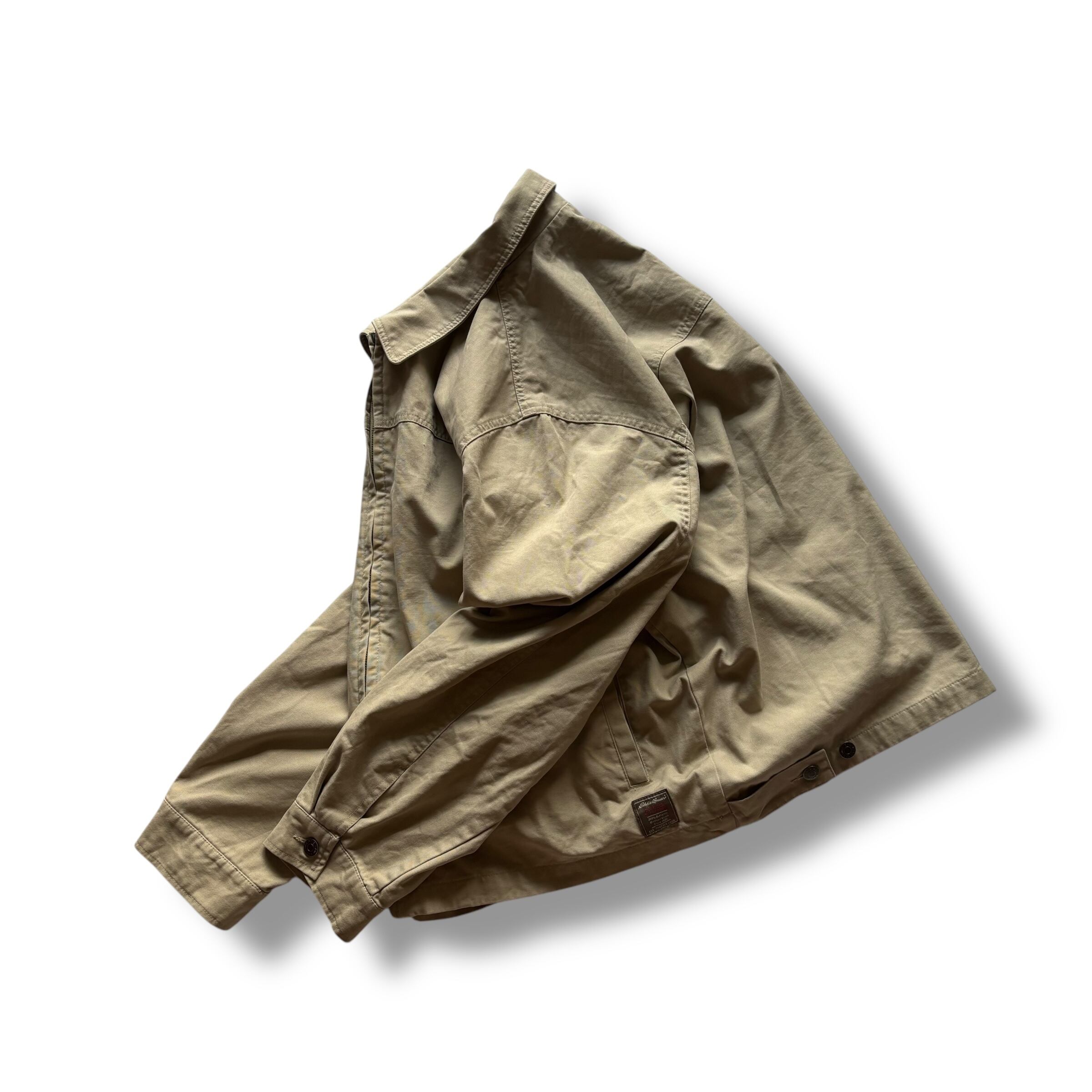 ワークウェアらしいタフな印象がある落ち着いたアースカラーのチノクロスを用いたシンプルなデザインは良い意味でクセがなく、何にでも合わせやすいライトアウターとなっています。