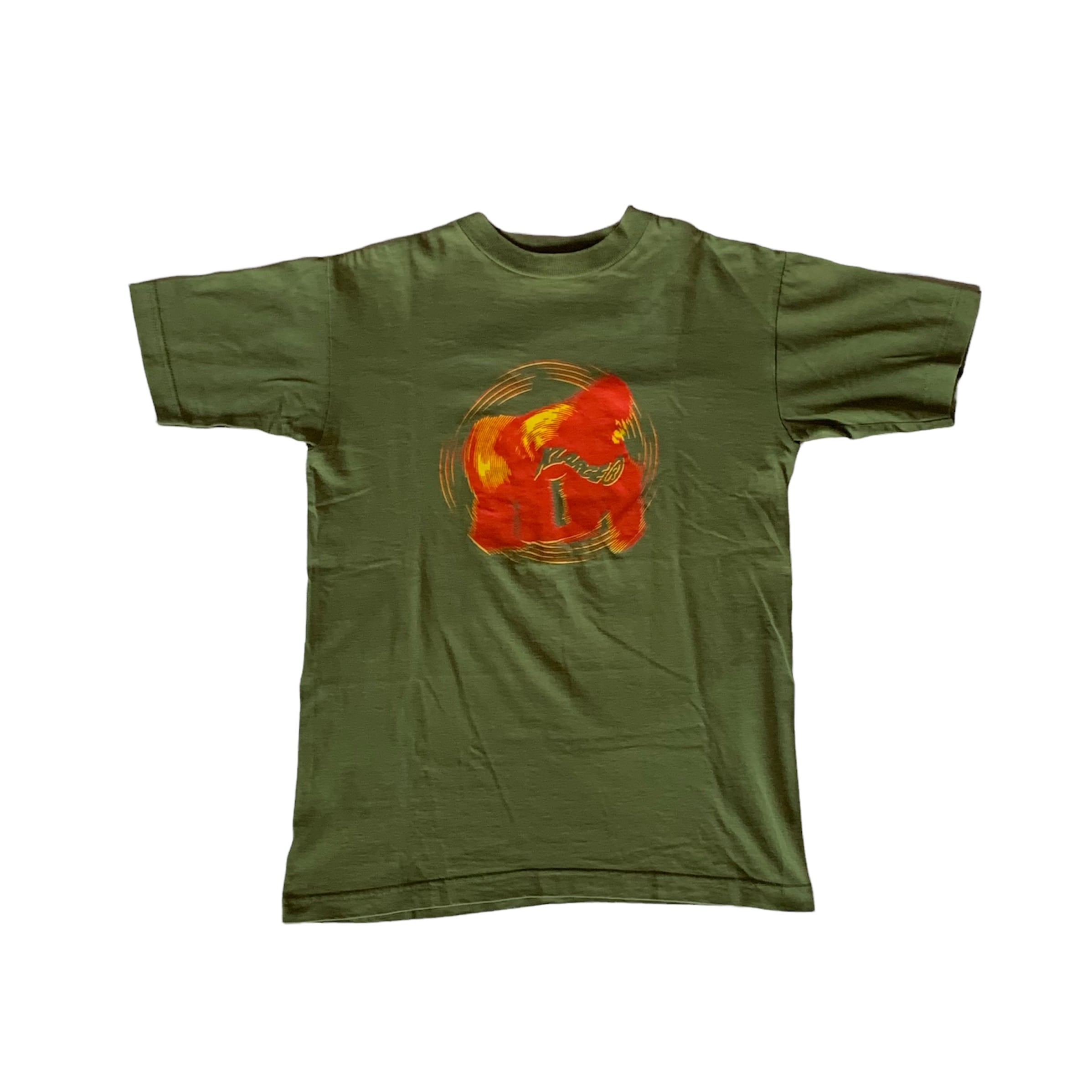 ボディのモスグリーンとプリントのゴリラのレッドのコントラストがインパクト抜群の逸品です。