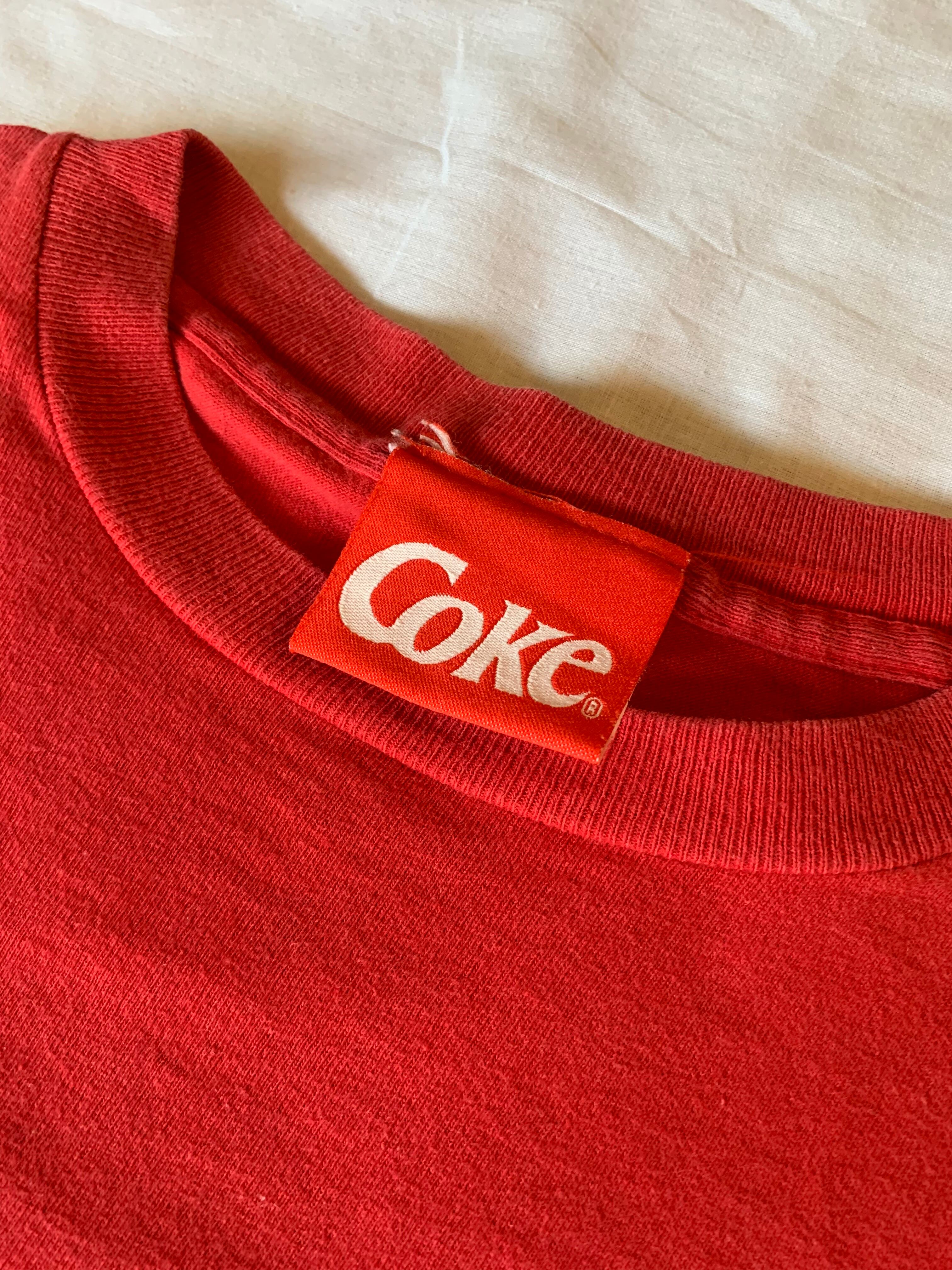 古きよきレトロなロゴが雰囲気抜群なコカコーラの企業モノTシャツです。コカコーラといえばこのテイストを思い浮かべる方も多いのではないでしょうか?