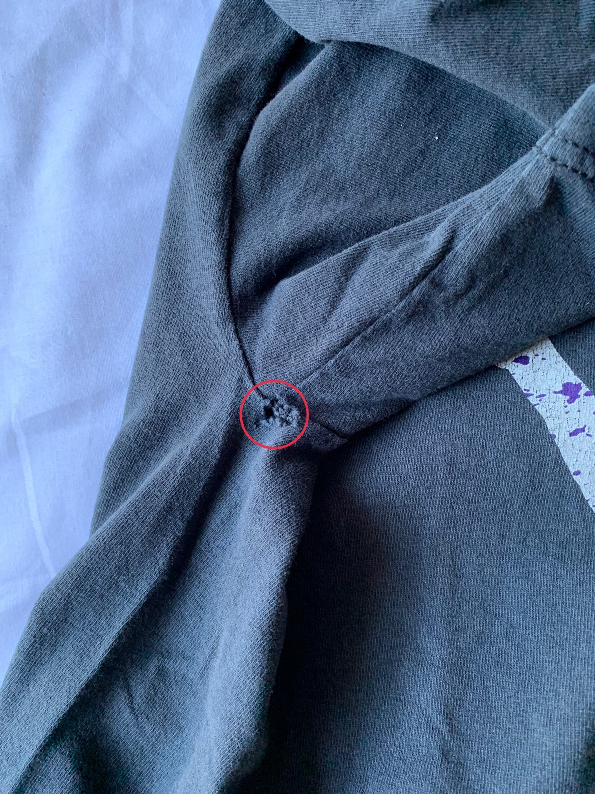 【状態】色褪せ、プリントかすれ、胸・裾・右脇下に穴あり(写真参照)