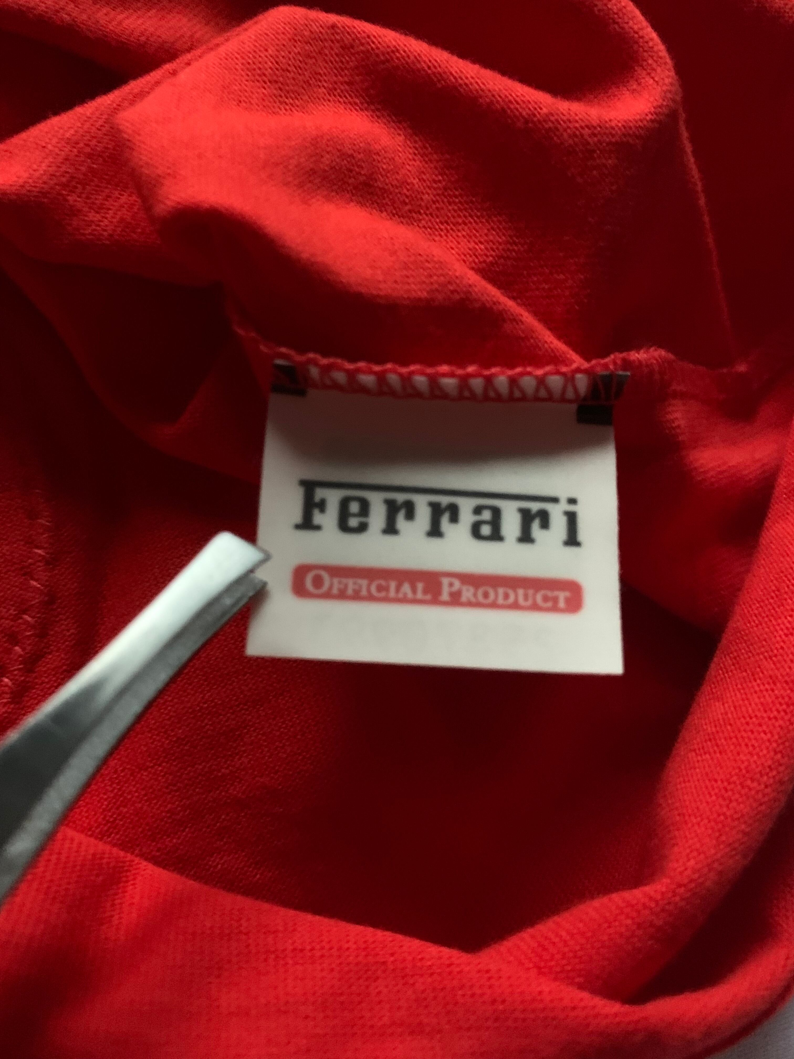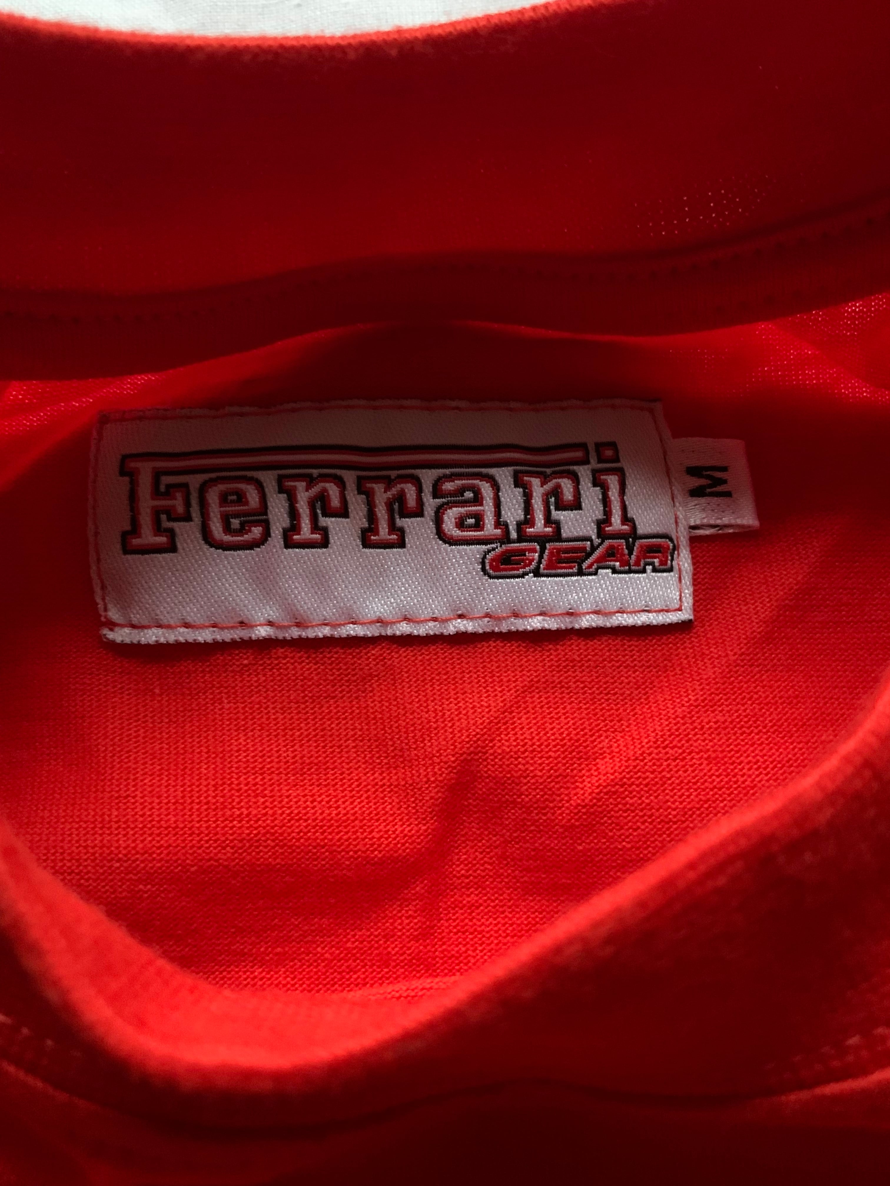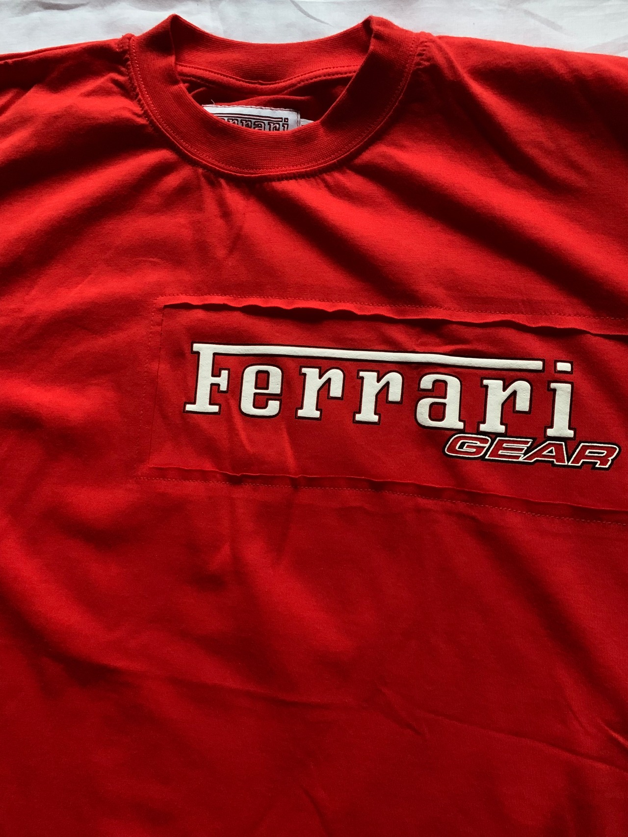 イタリアの高級スポーツカーメーカー『Ferrari』のワッペンが特徴的なTシャツです。