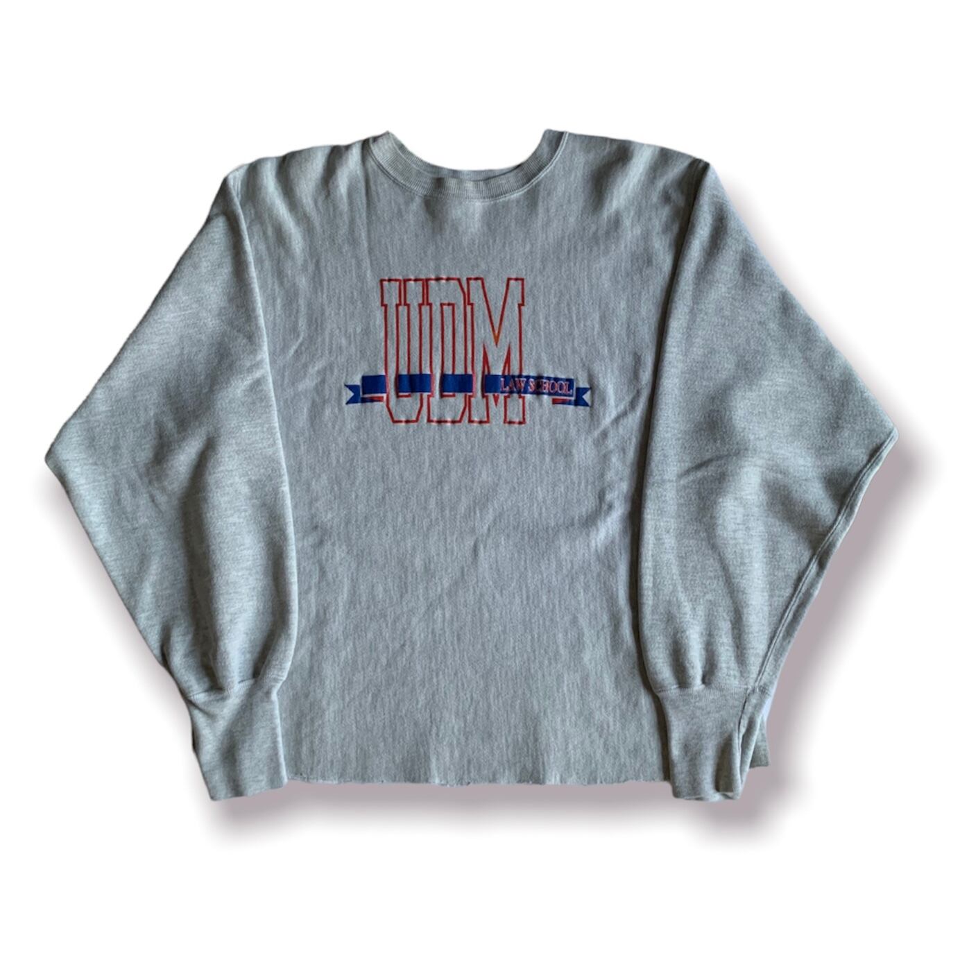 フロントに刺繍された『UDM』とは『University of Detroit Mercy』の略称。こちらのスウェットは元々ミシガン州デトロイトにある法科大学院の物のようです。