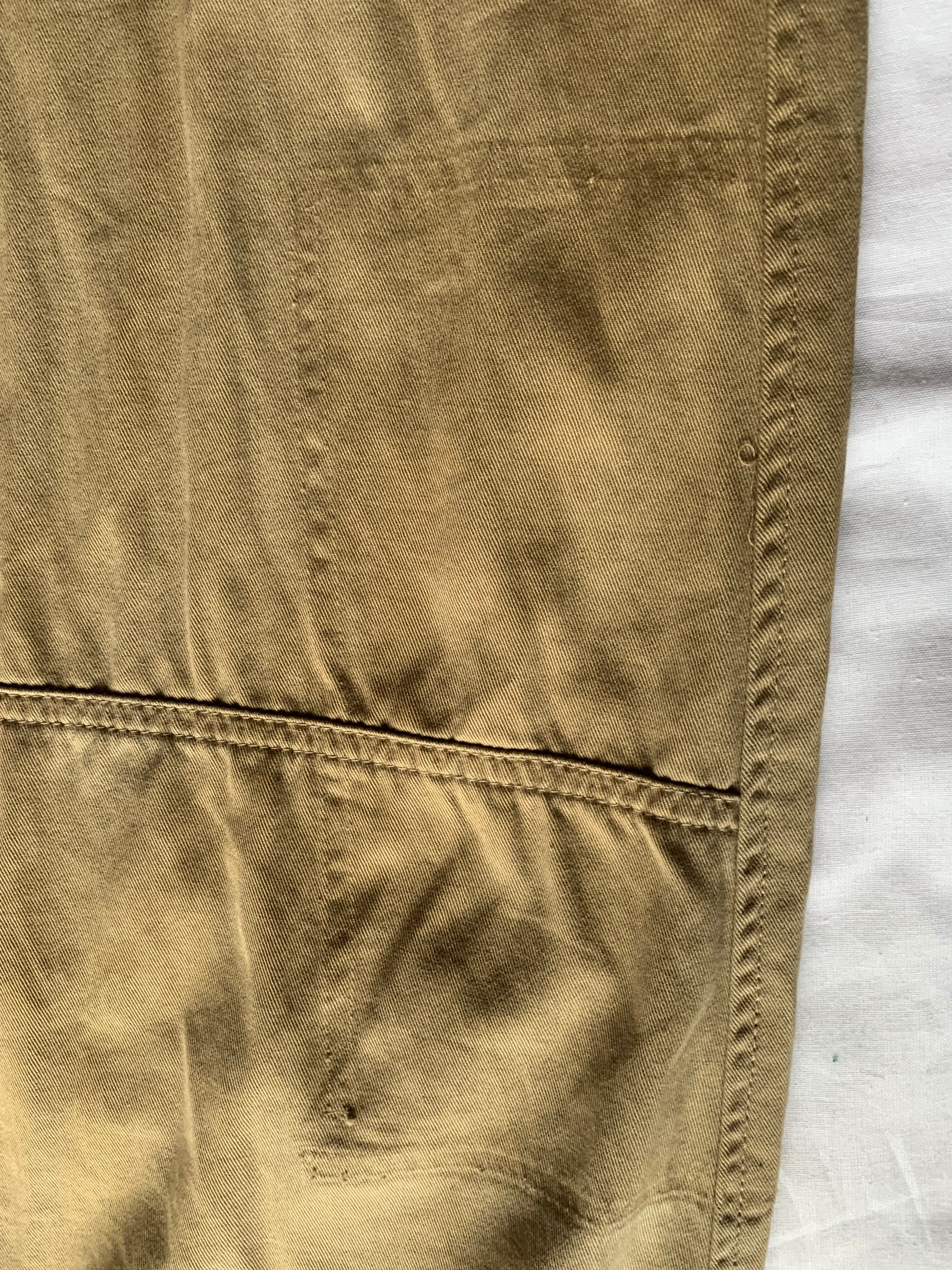元々ポケットがあった部分の生地は色味が異なってパッチワークのようになっており、偶然の産物かもしれませんがラフな雰囲気の好ディテールに仕上がっています。