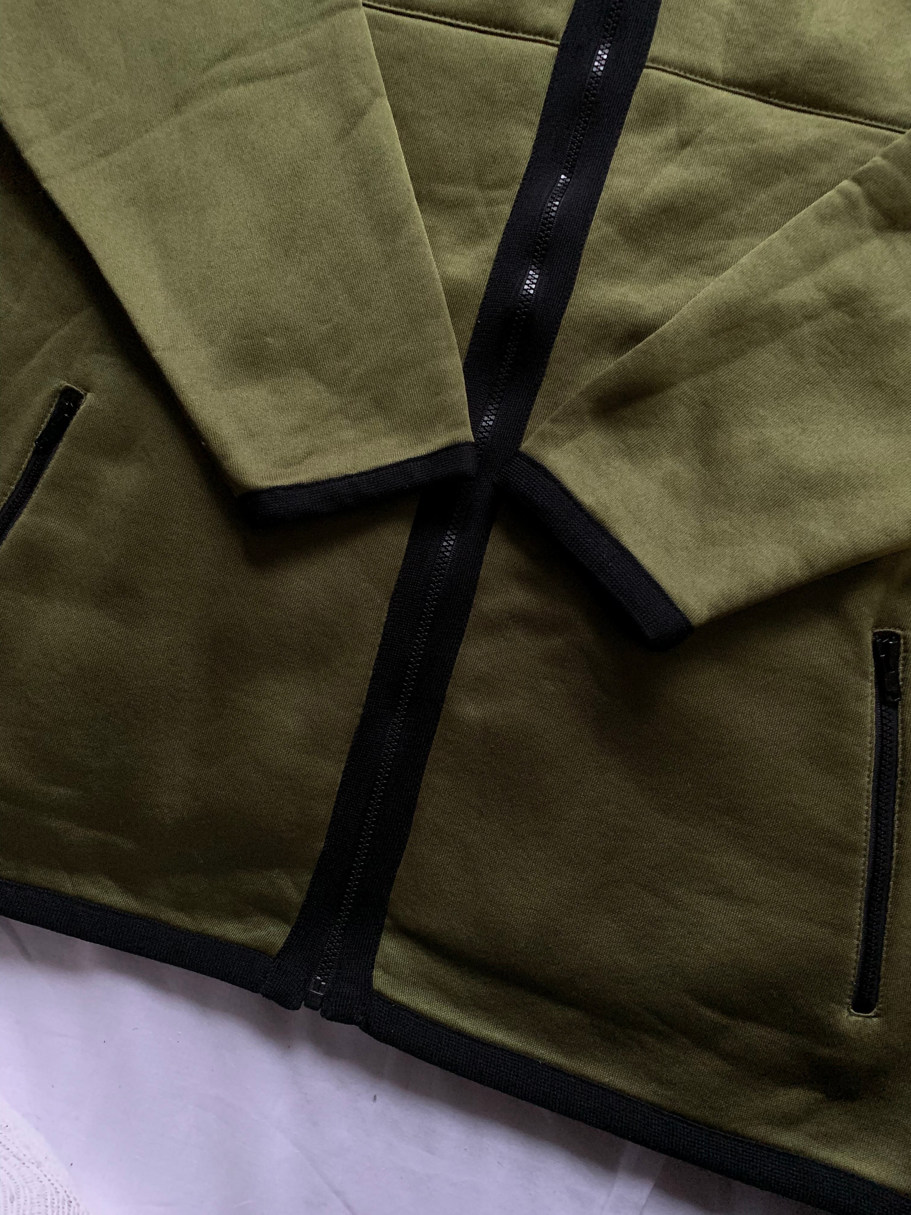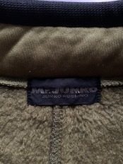 胸のブランドネーム刺繍と黒いパイピングが特徴的なこと以外には無駄な要素が削ぎ落とされており、シンプルかつソリッドな印象の一着です。