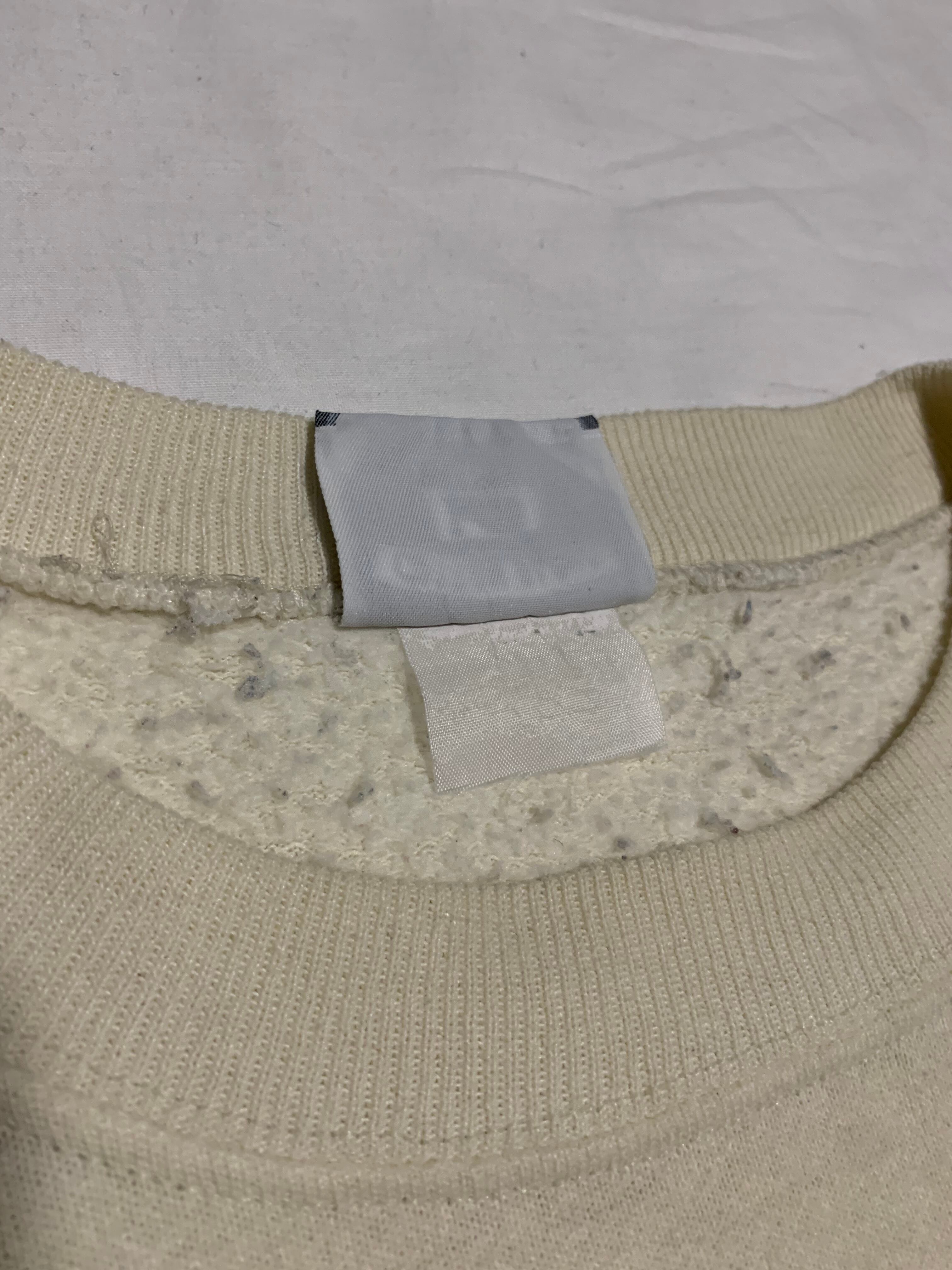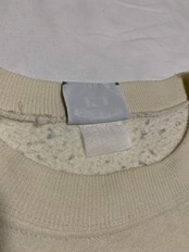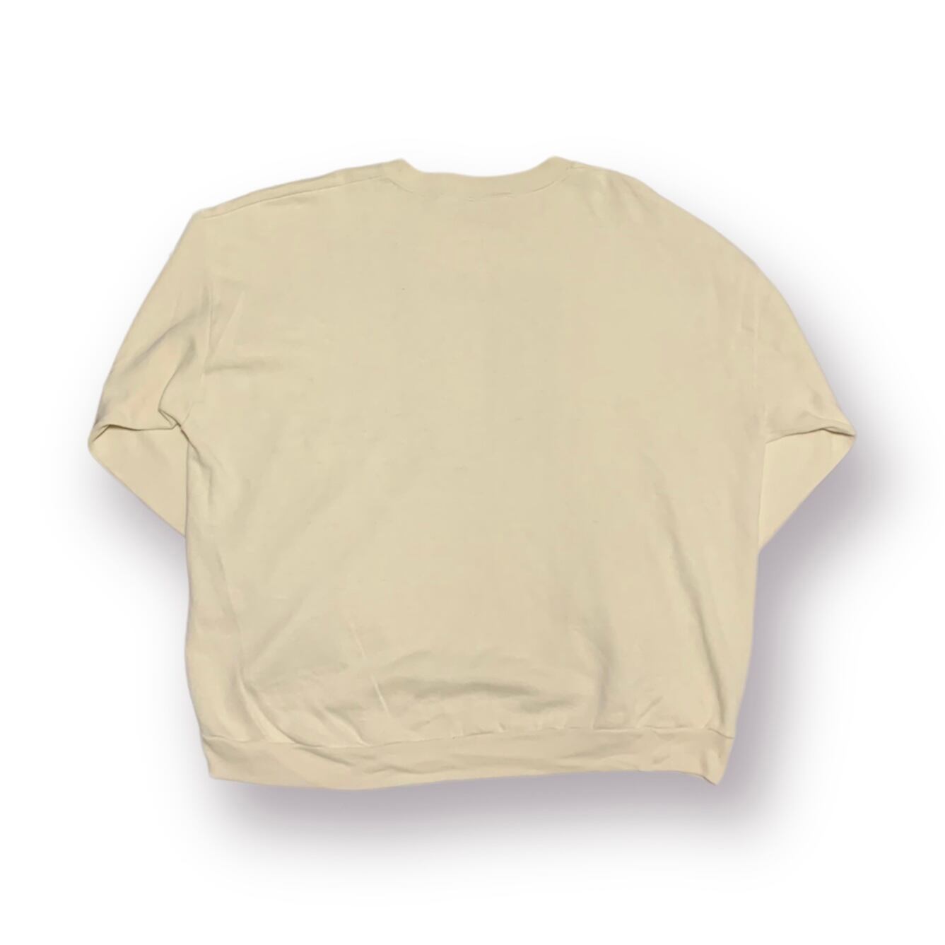 オフホワイトのボディにメッセージ性のあるクラシックな雰囲気のプリントが施されたクルーネックスウェットです。