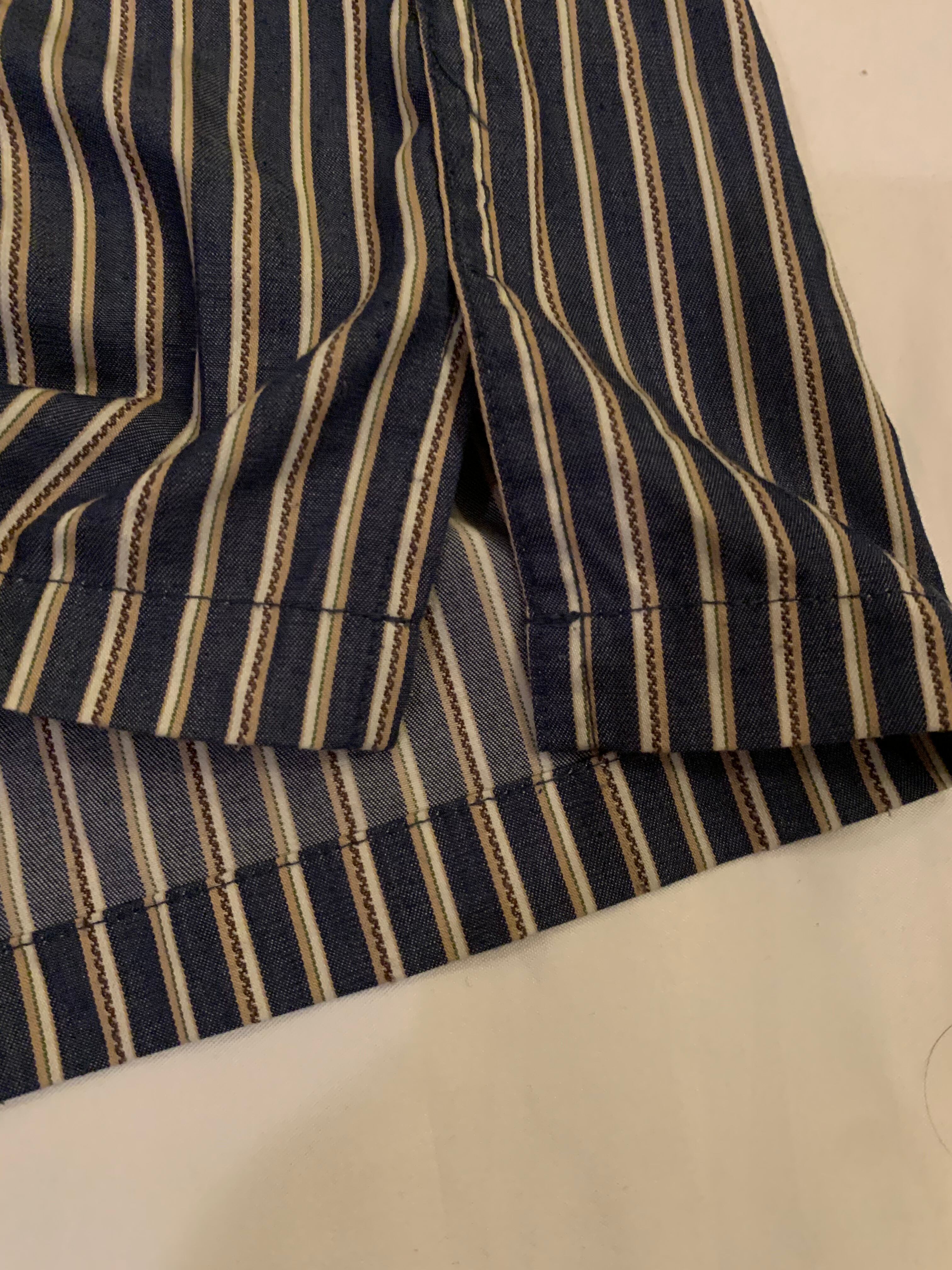 レーヨン混紡の滑らかな肌触りと細やかなストライプといった品格の良さを際立たせるディテールが備わった一着となっております。