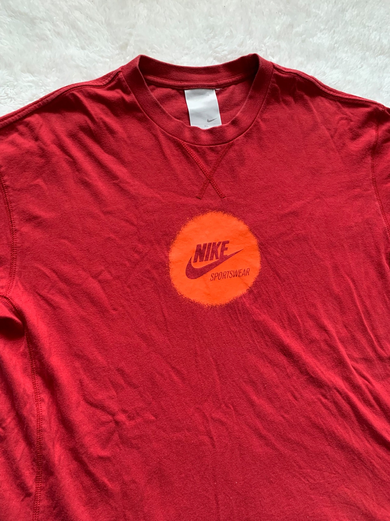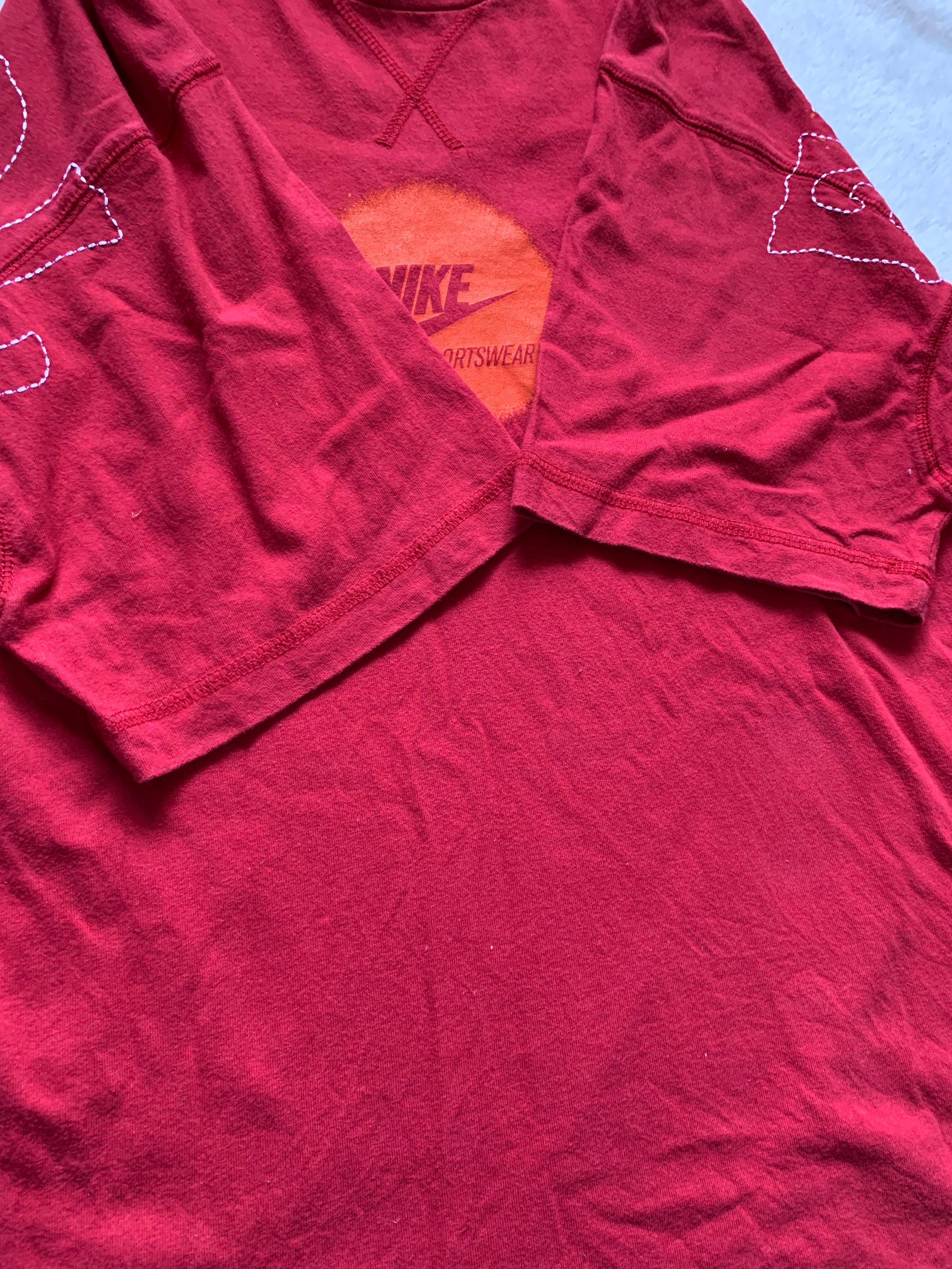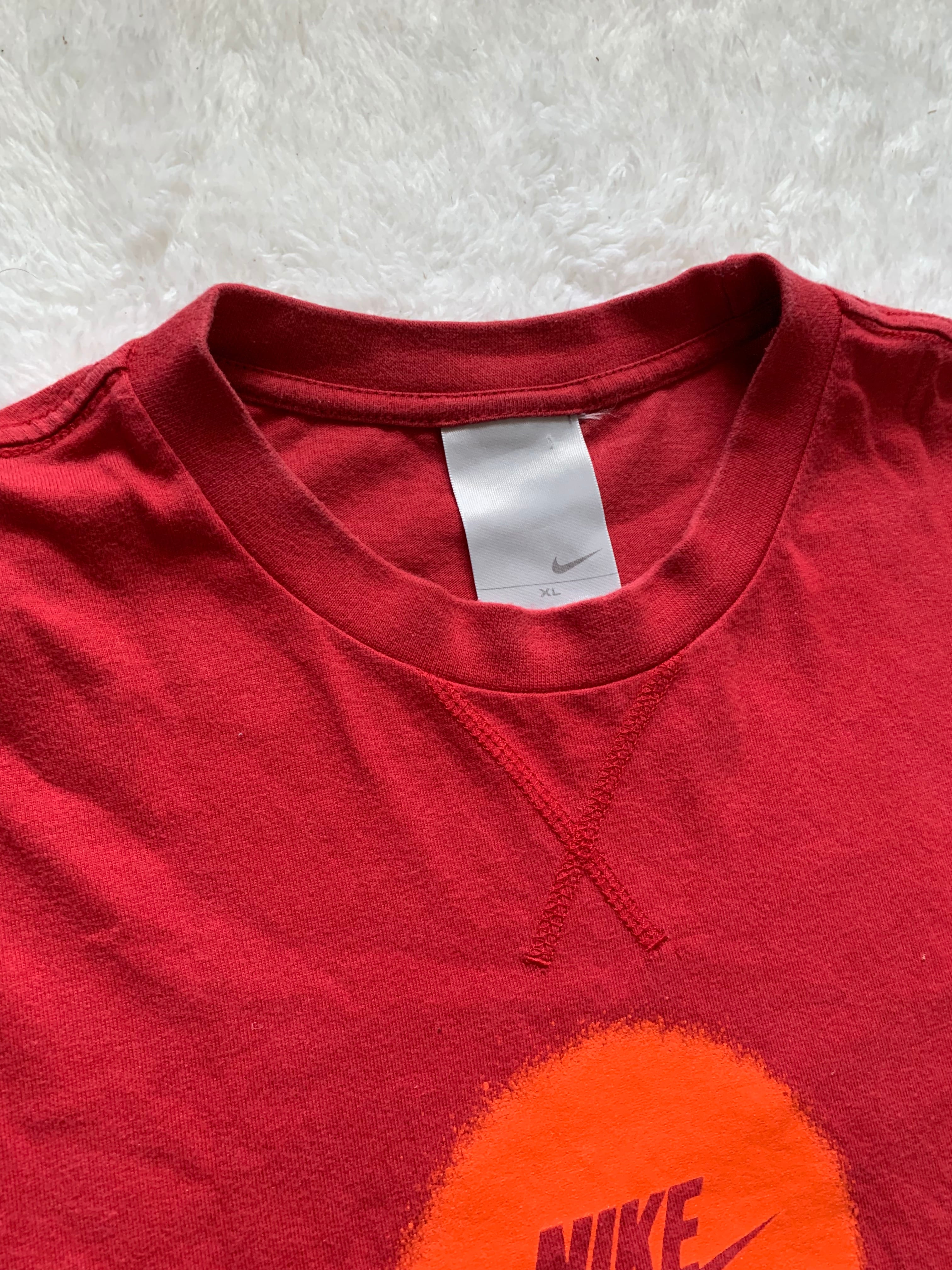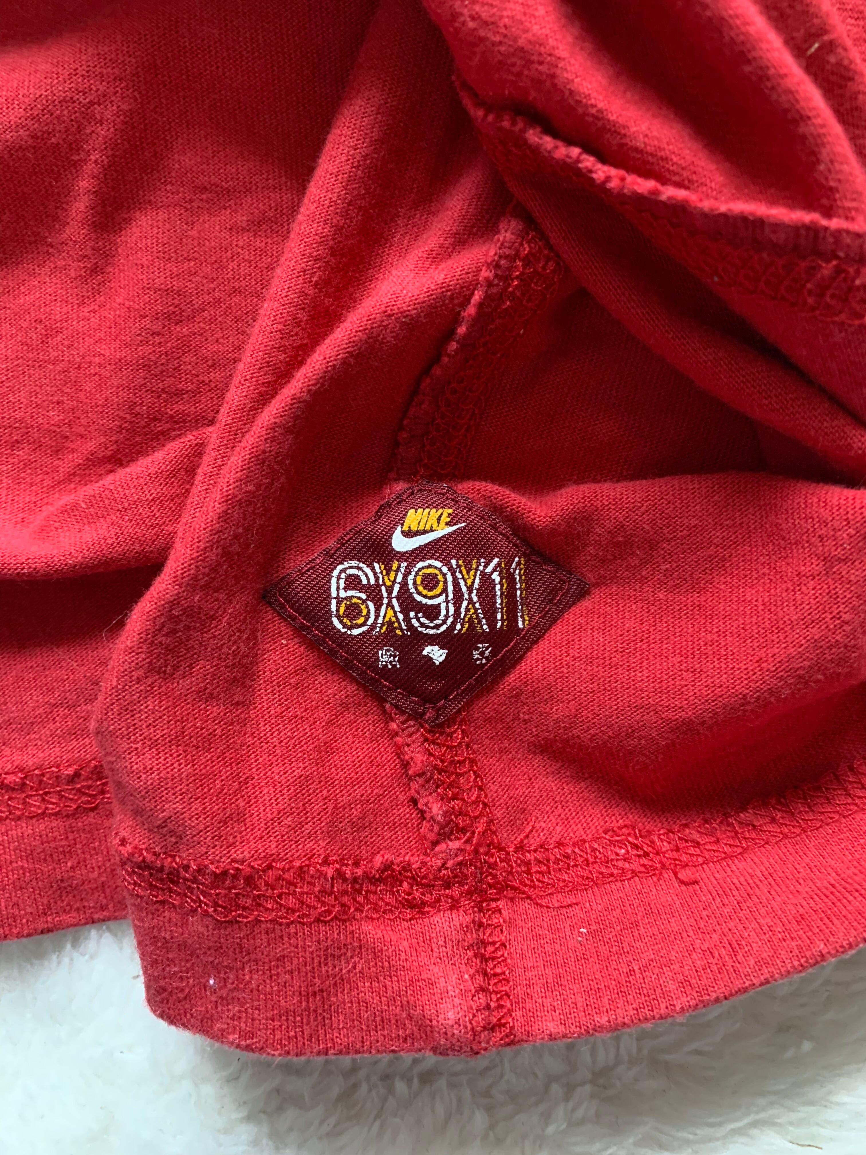 NIKEのベーシックなスウッシュロゴとサッカーがモチーフのプリントがそれぞれ両面で施されているオーバーサイジングな一枚となっております。