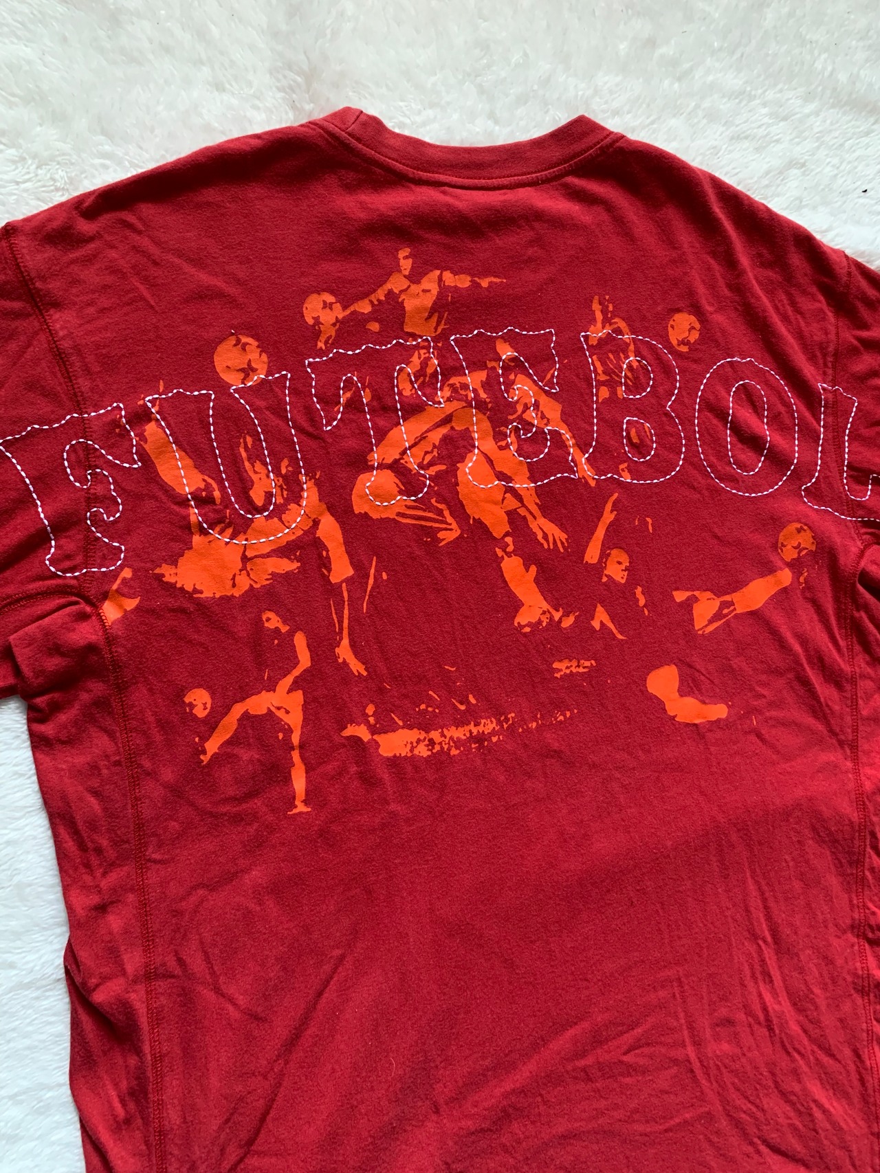 背面のフットボールプレイヤー達のプリントの上にはポルトガル語でフットボールを意味する『FUTEBOL』の文字が刺繍されており、手が込んだディテールが嬉しいですね。