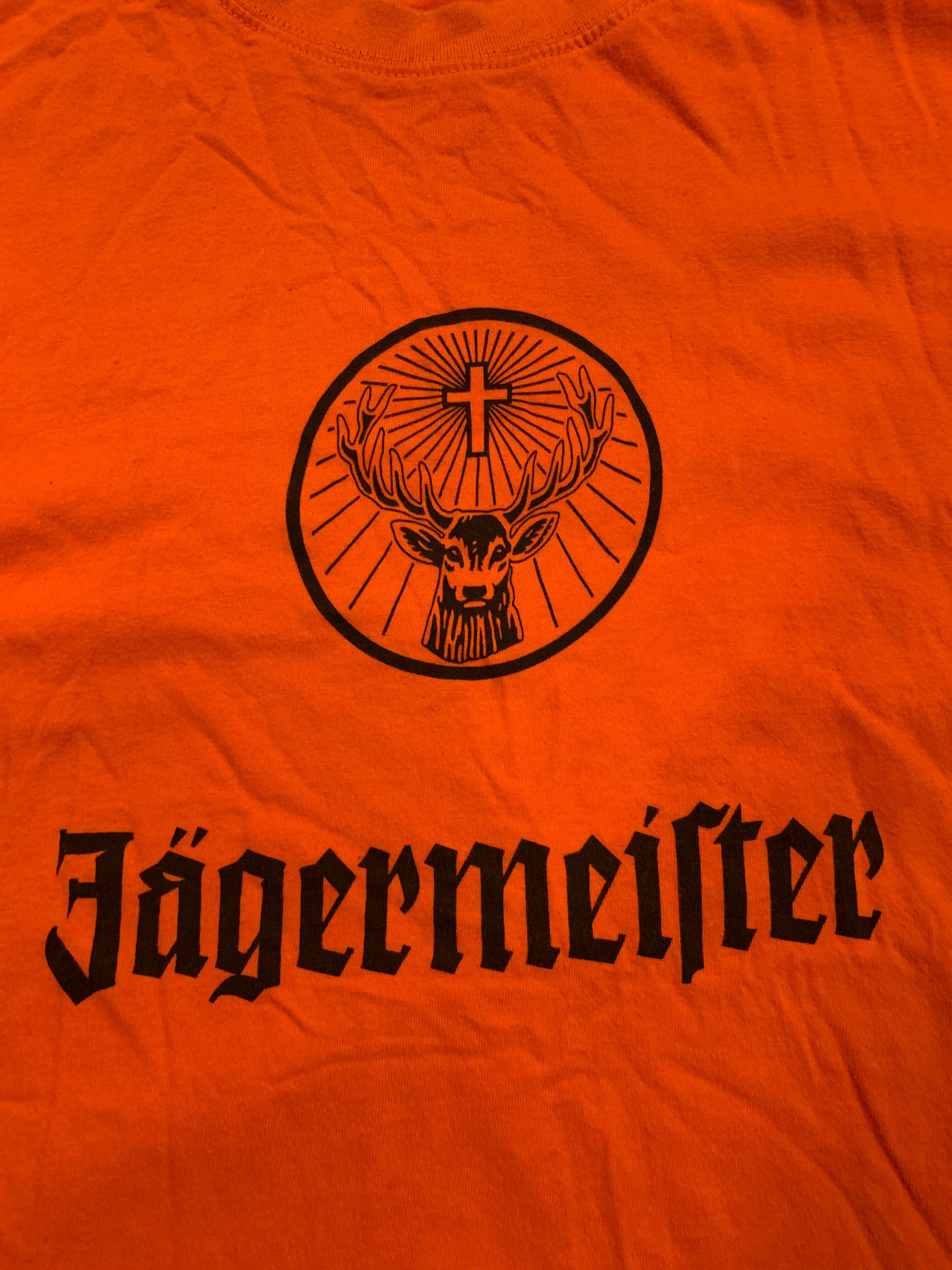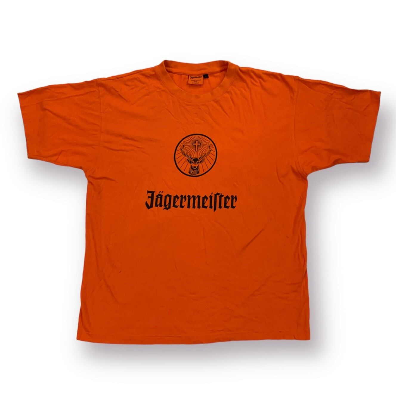 56種類ものハーブが使用されたドイツのハーブリキュール『Jägermeister』のS/SプリントTシャツです。