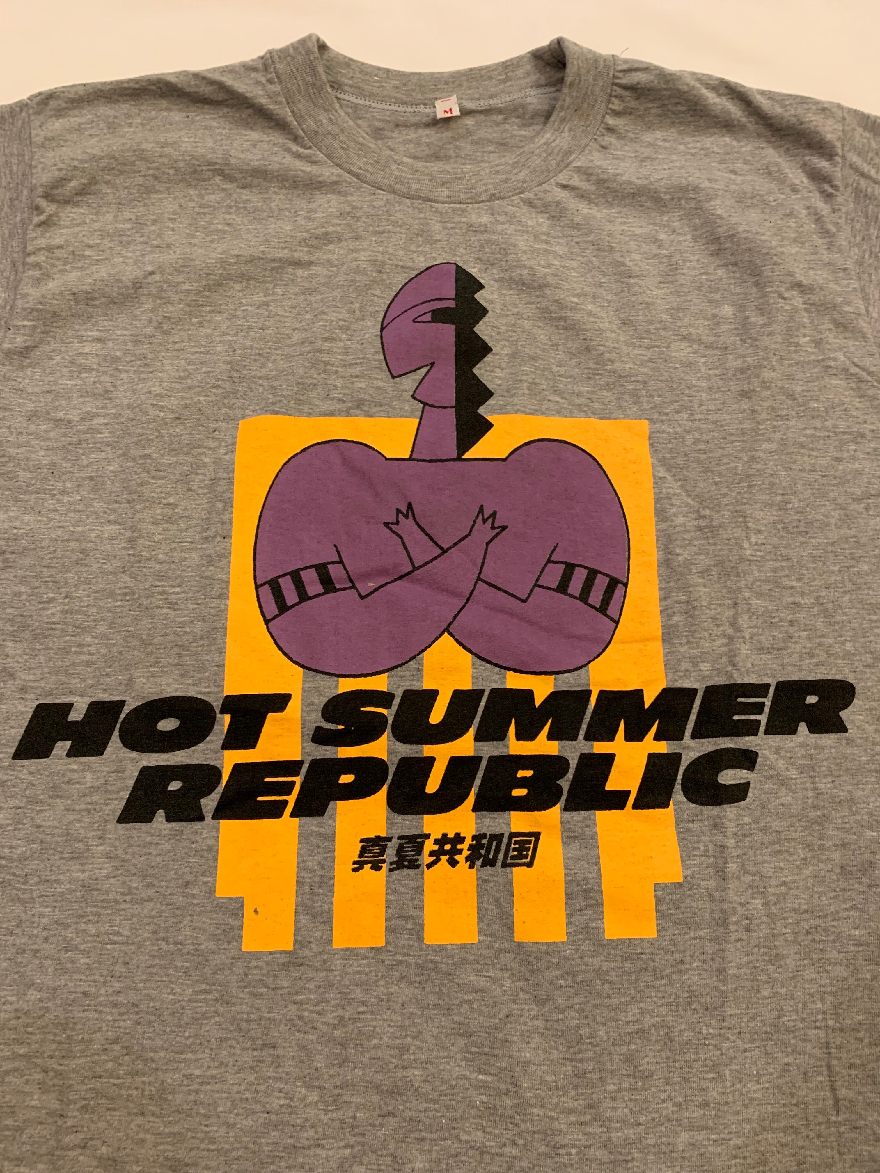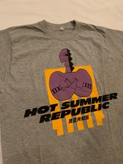 こちらのアイテムの中でもっとも目を引くのはイラストと一緒にプリントされている文言『HOT SUMMER REPUBLIC』がそのまま日本語で直訳された『真夏共和国』の文字ではないでしょうか。