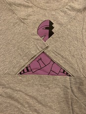 上述のプリントは背面にも小さめなものが施されており、どちらの面も独特な存在感を放っています。