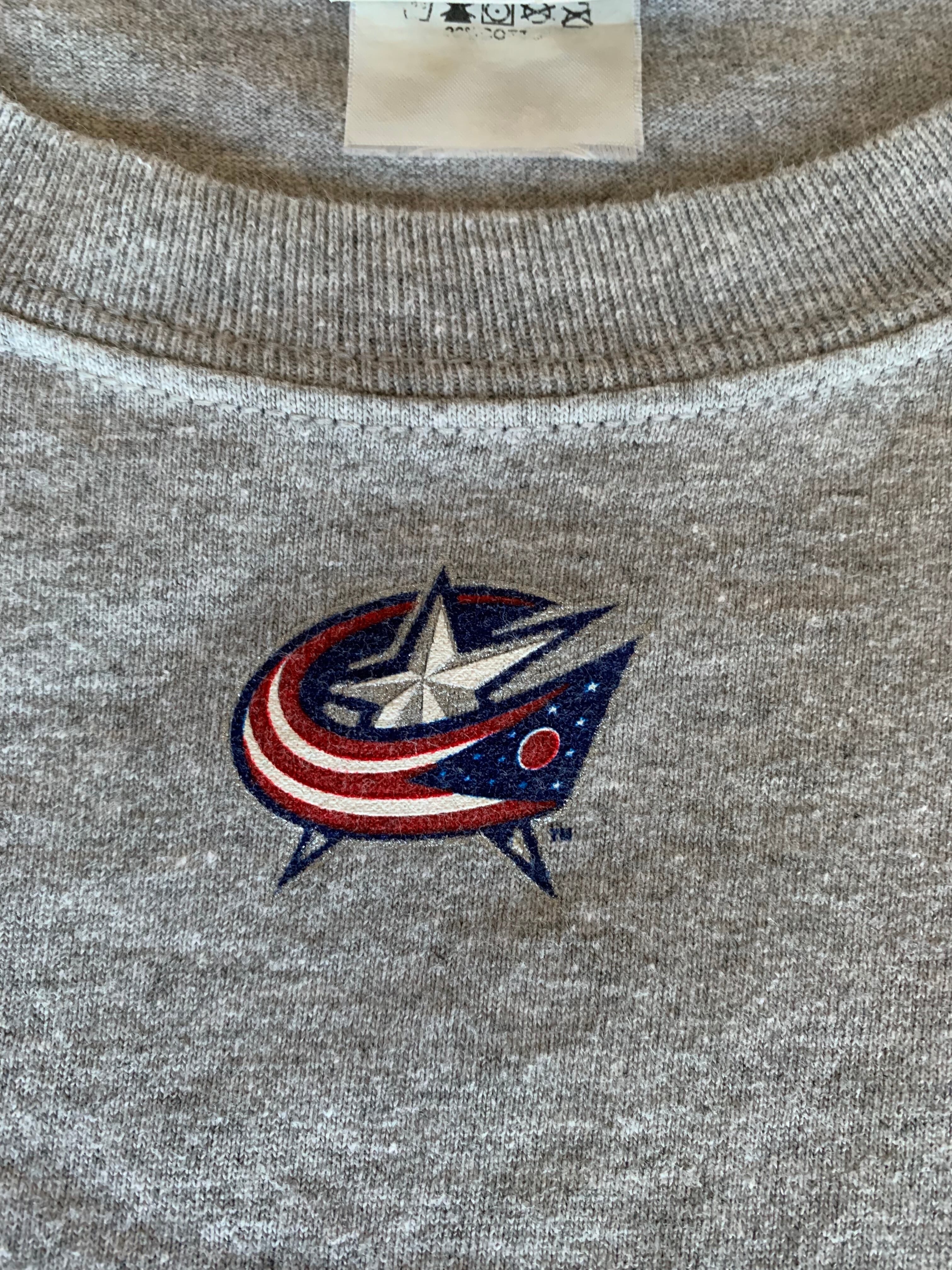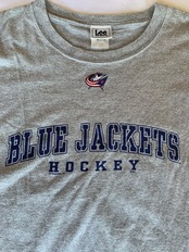 米国・オハイオ州のコロンバスを本拠地として活動しているアイスホッケーのプロチーム、ブルージャケッツのロゴがフロントにプリントされたスポーティな雰囲気の一枚です。
