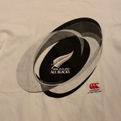 ラグビーの世界ランキングで常に上位に位置し、ワールドカップにおいて3度の優勝を誇る強豪国・ニュージーランドの代表チーム『ALL BLACKS』のロゴが入ったグラフィックが目を引く王道の雰囲気の一枚です。