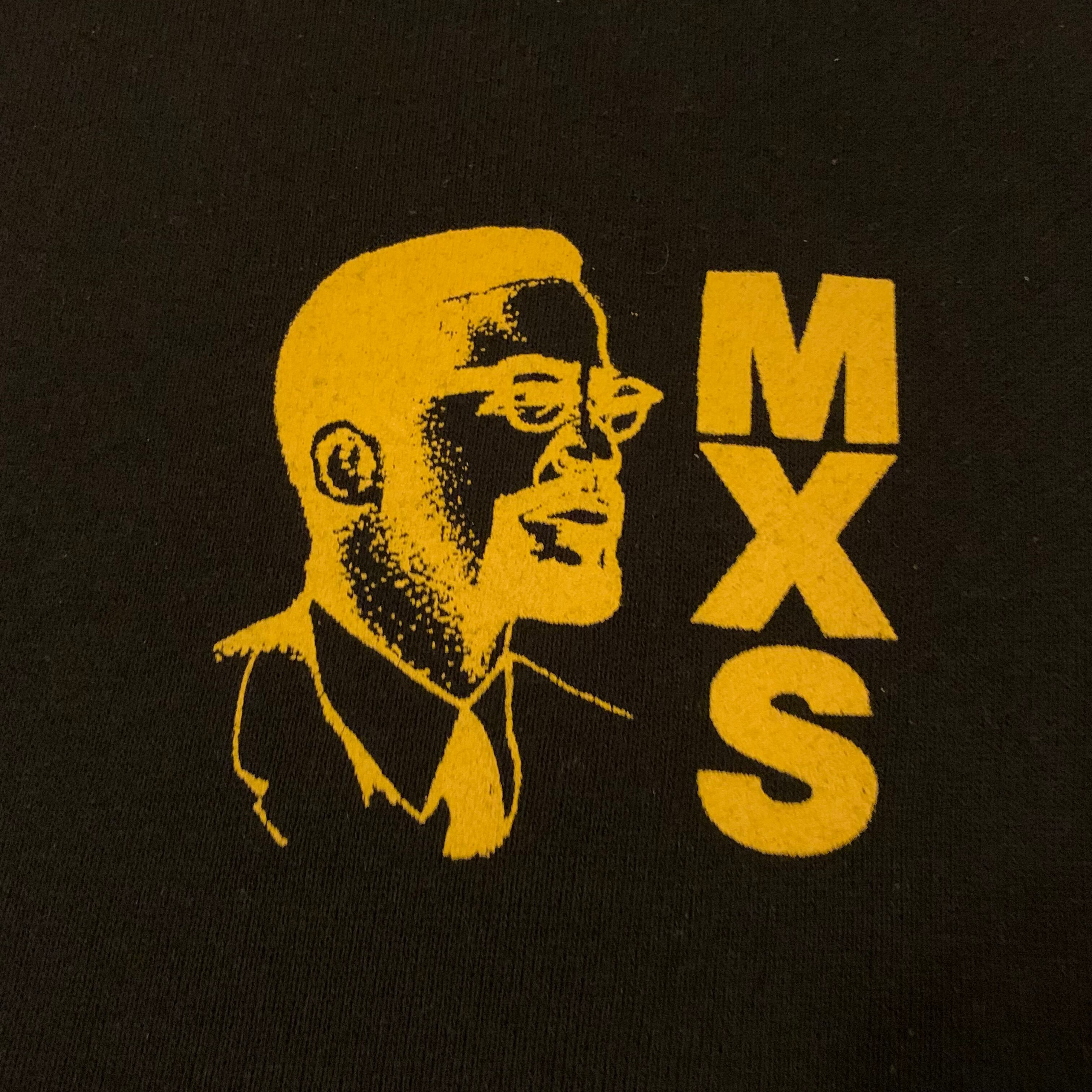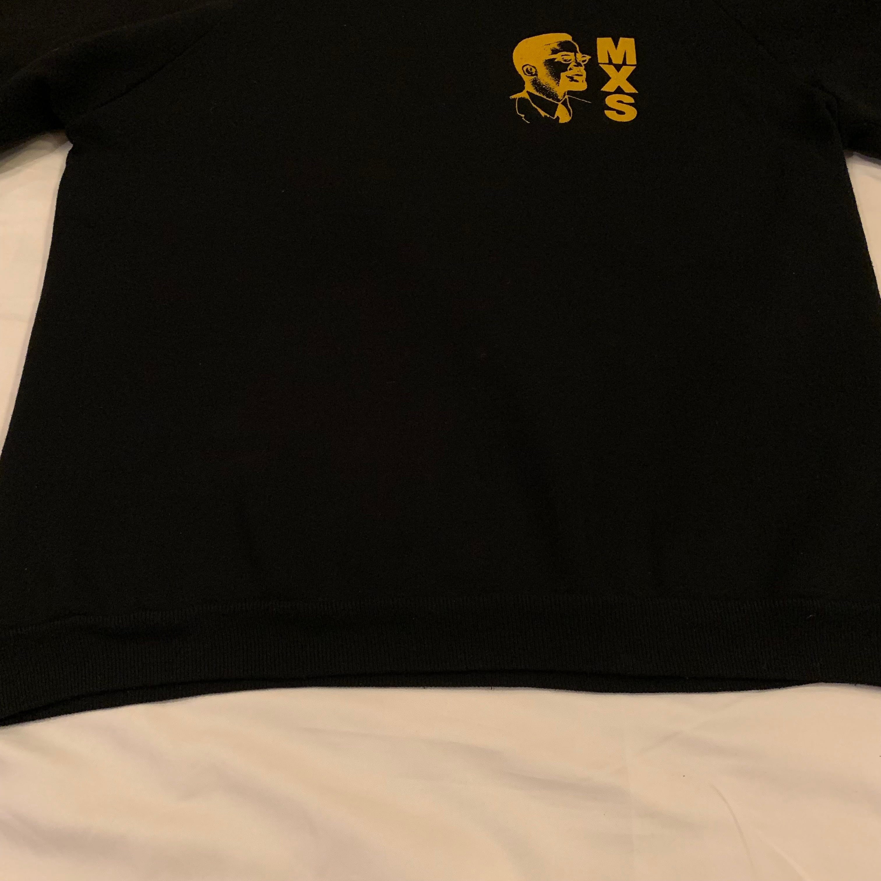 両面プリントとなっており、フロント胸部分にはマルコムXの横顔と高校名の略称である『MXS』の文字が、背面には同校のスポーツチームの名前とそのマスコットキャラクターのブルドッグが大きくプリントされています。