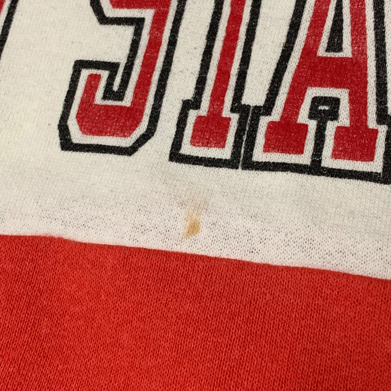 こちらはレッドとホワイトの切替が効いたバイカラーのボディにカレッジ物らしい書体で『OHIO STATE』の文字がプリントされた前述のものとはまた少し異なった雰囲気の一枚となっています。