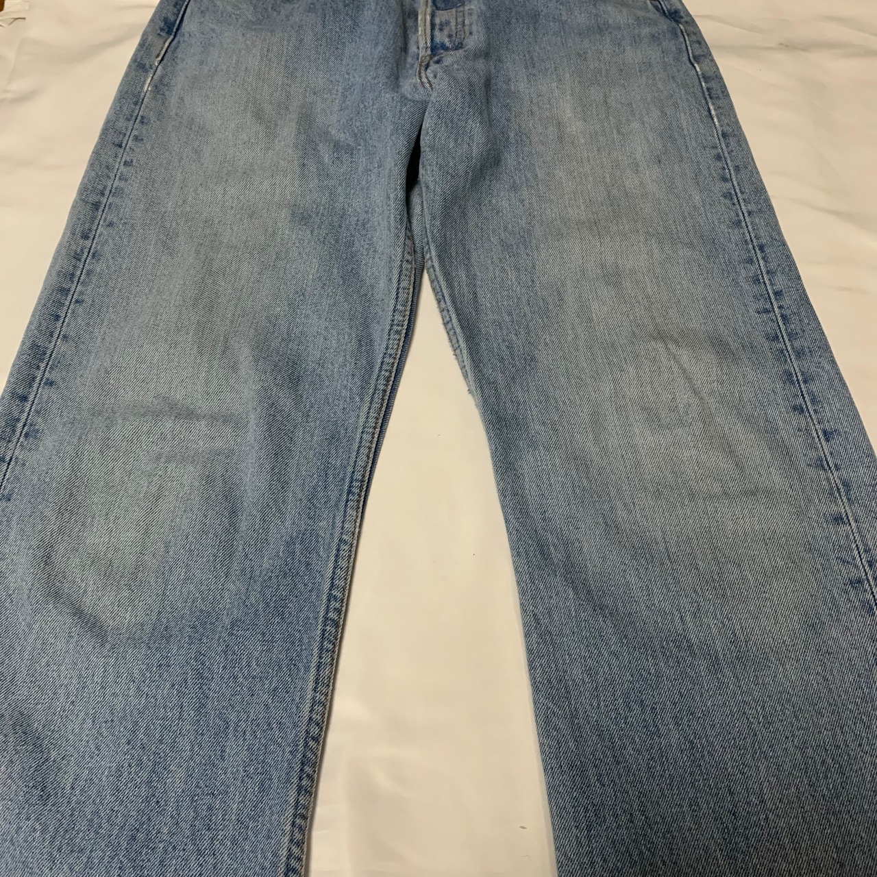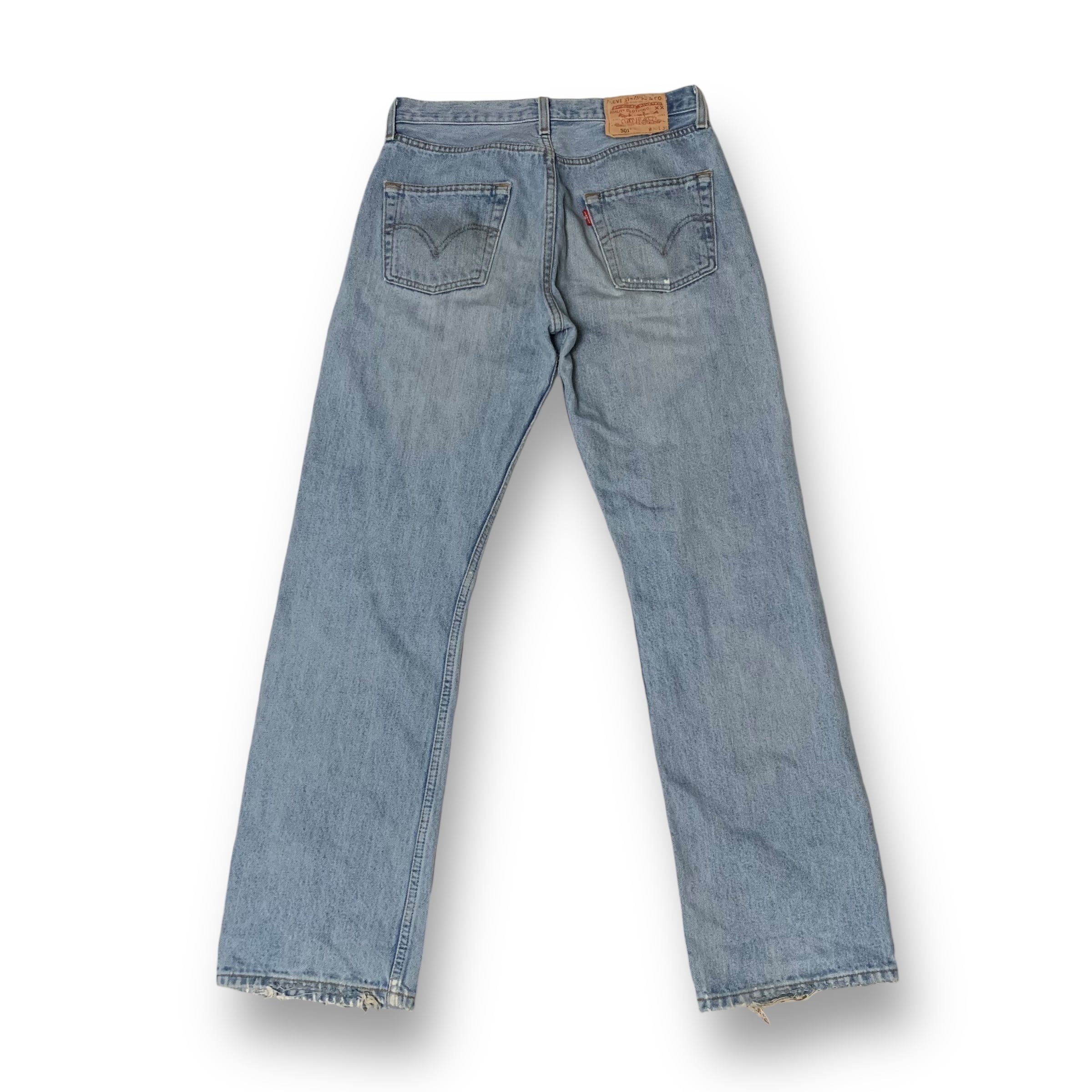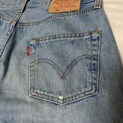 501特有のストレートシルエットやボタンフライといったディテールはもちろん、色斑を作りつつ全体的にアイスブルーとも形容できる淡い色味まで褪色したボディが醸し出すこなれた雰囲気はこのデニムの個性かと思います。