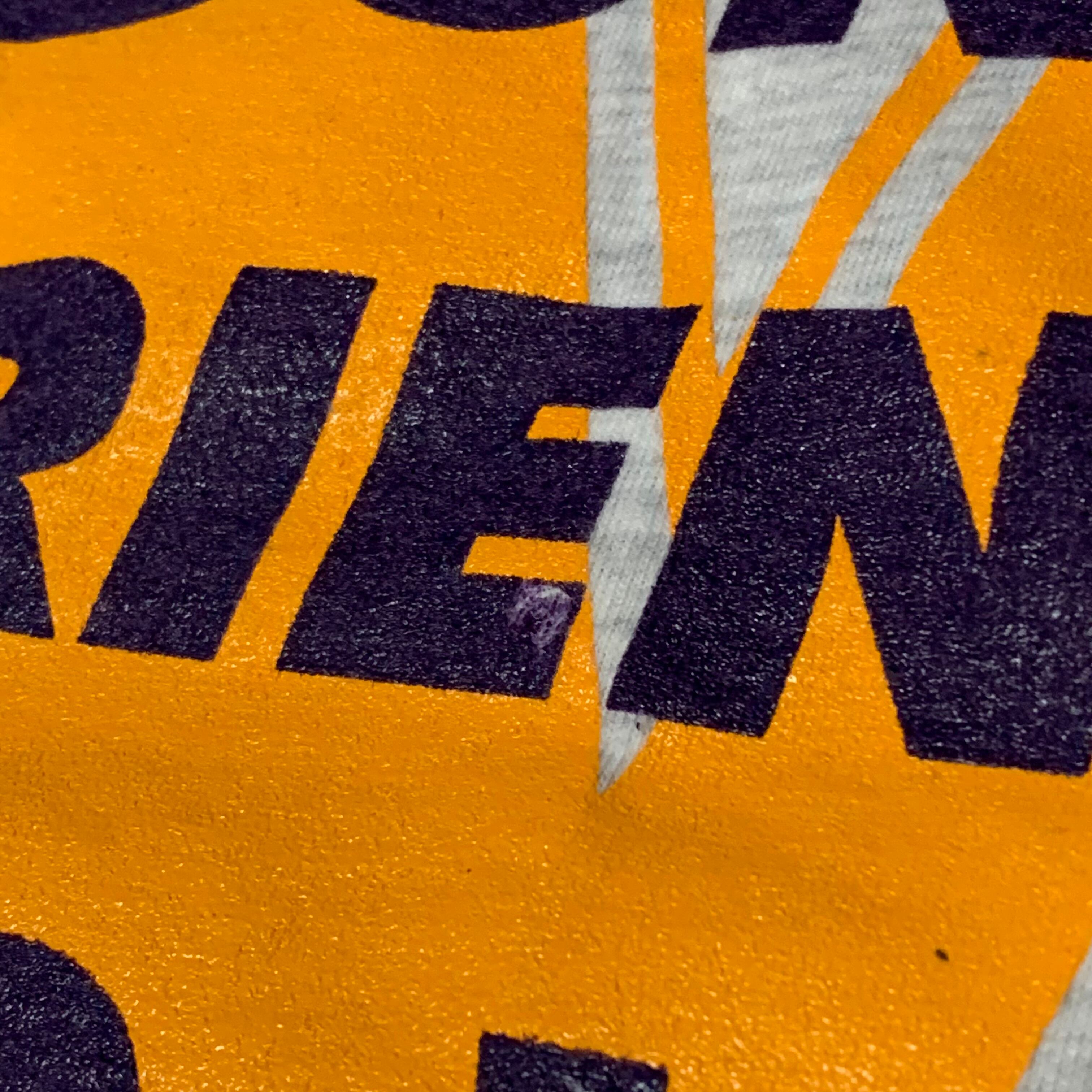 大ぶりなレタリングでメッセージ性の強い両面プリントが施された米国らしい雰囲気の一枚となっています。