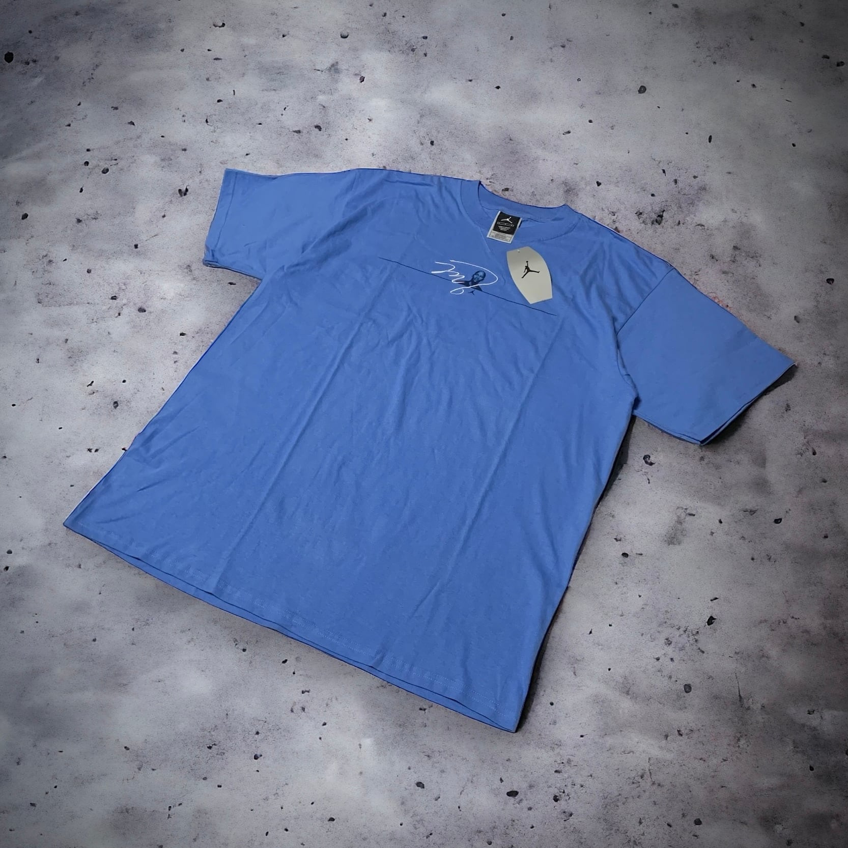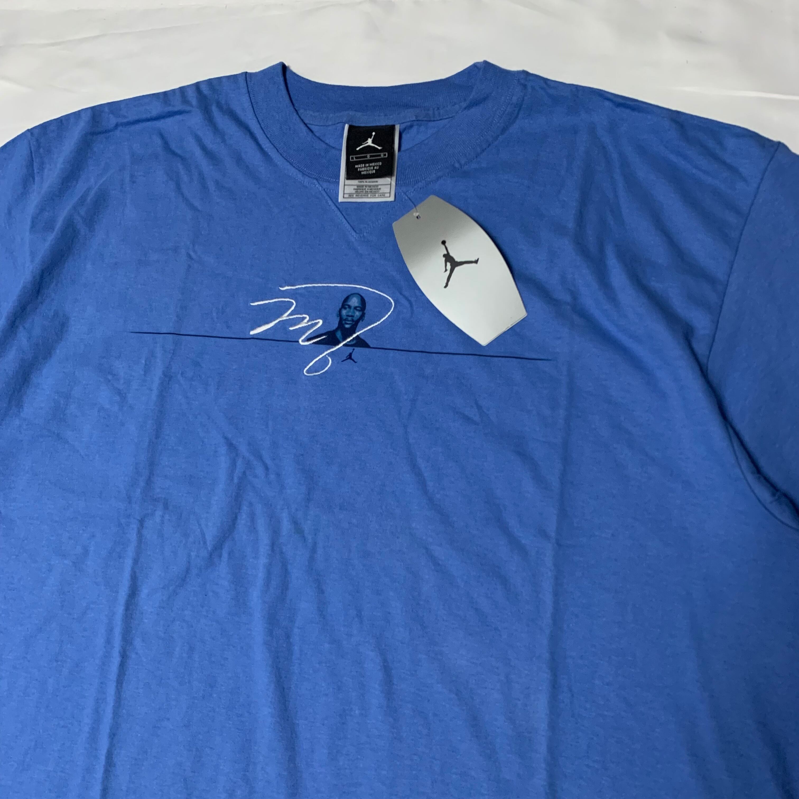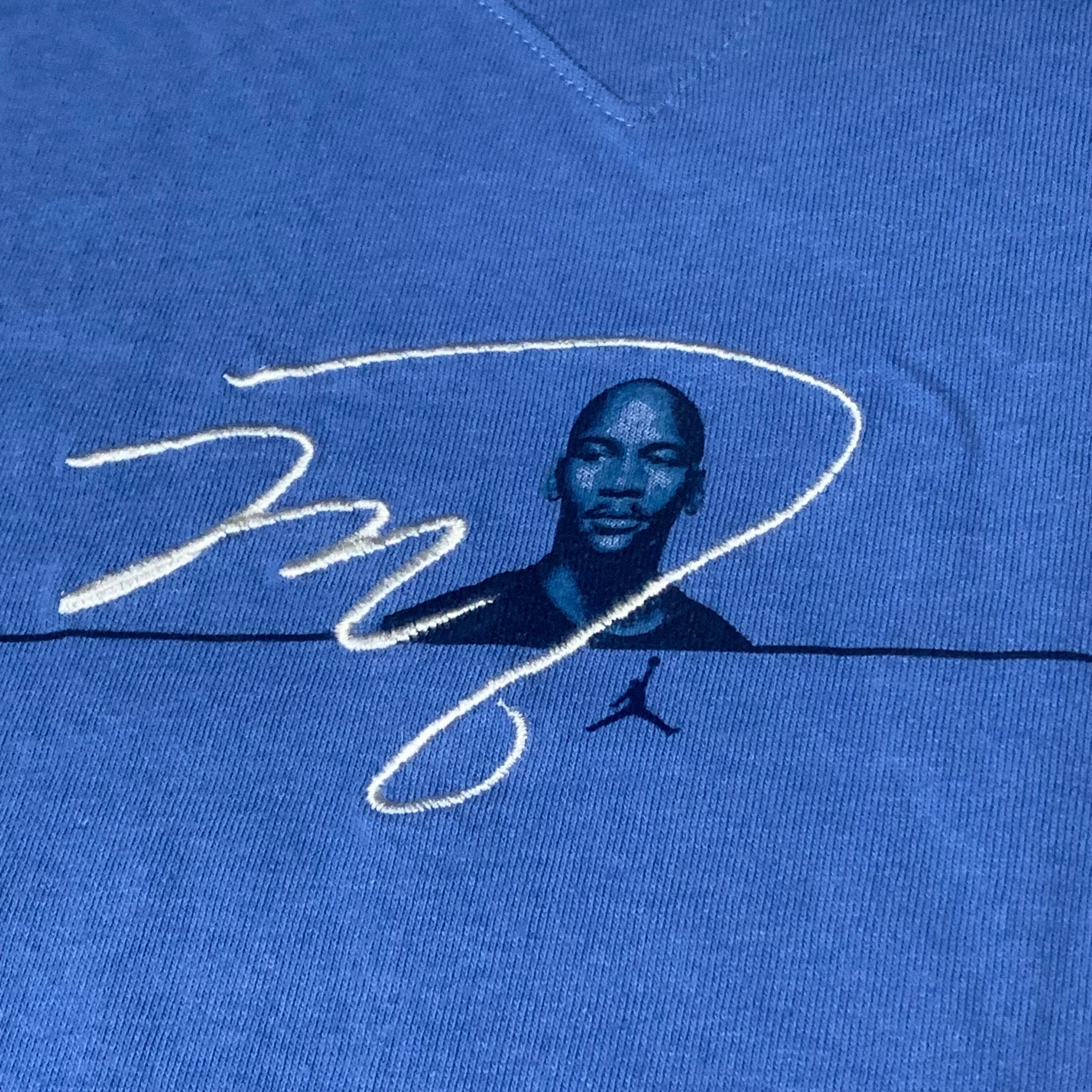 フロント部分にはバストショットでプリントされたジョーダンに重なるように彼のサインが、そして背面には小さめのジャンプマンのロゴがそれぞれ刺繍で施されており、シンプルでありつつ手の込んだデザインは非常に洗練された印象です。
