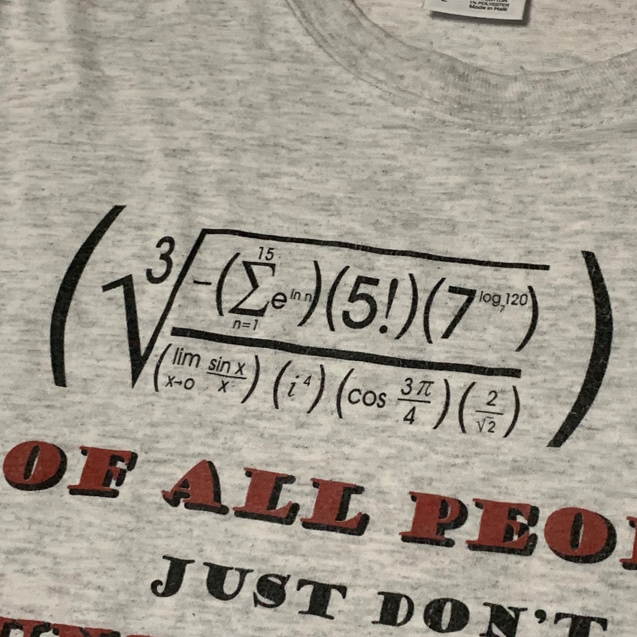 そんな数学に関するユーモアのあるジョークが古着の世界でもお馴染みの米国のボディブランド『GILDAN』のボディにプリントされた一枚です。